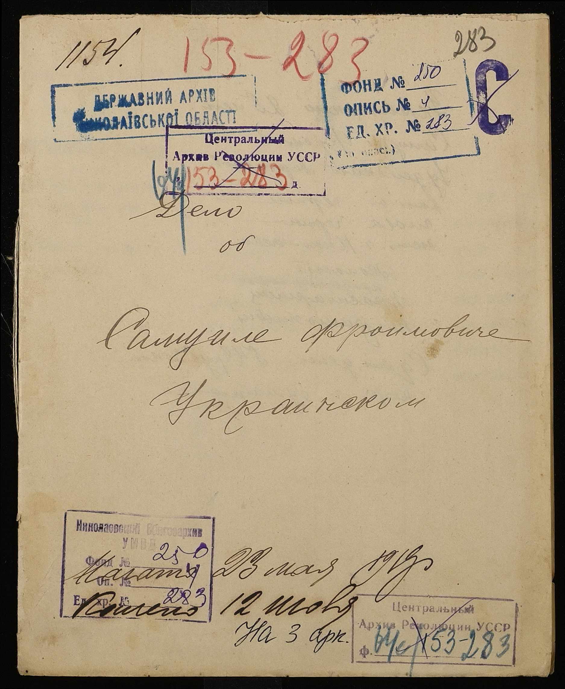 • • • • Справа № 283 “Український Самуїл Фроїмович (Украинский Самуил Фроимович)”