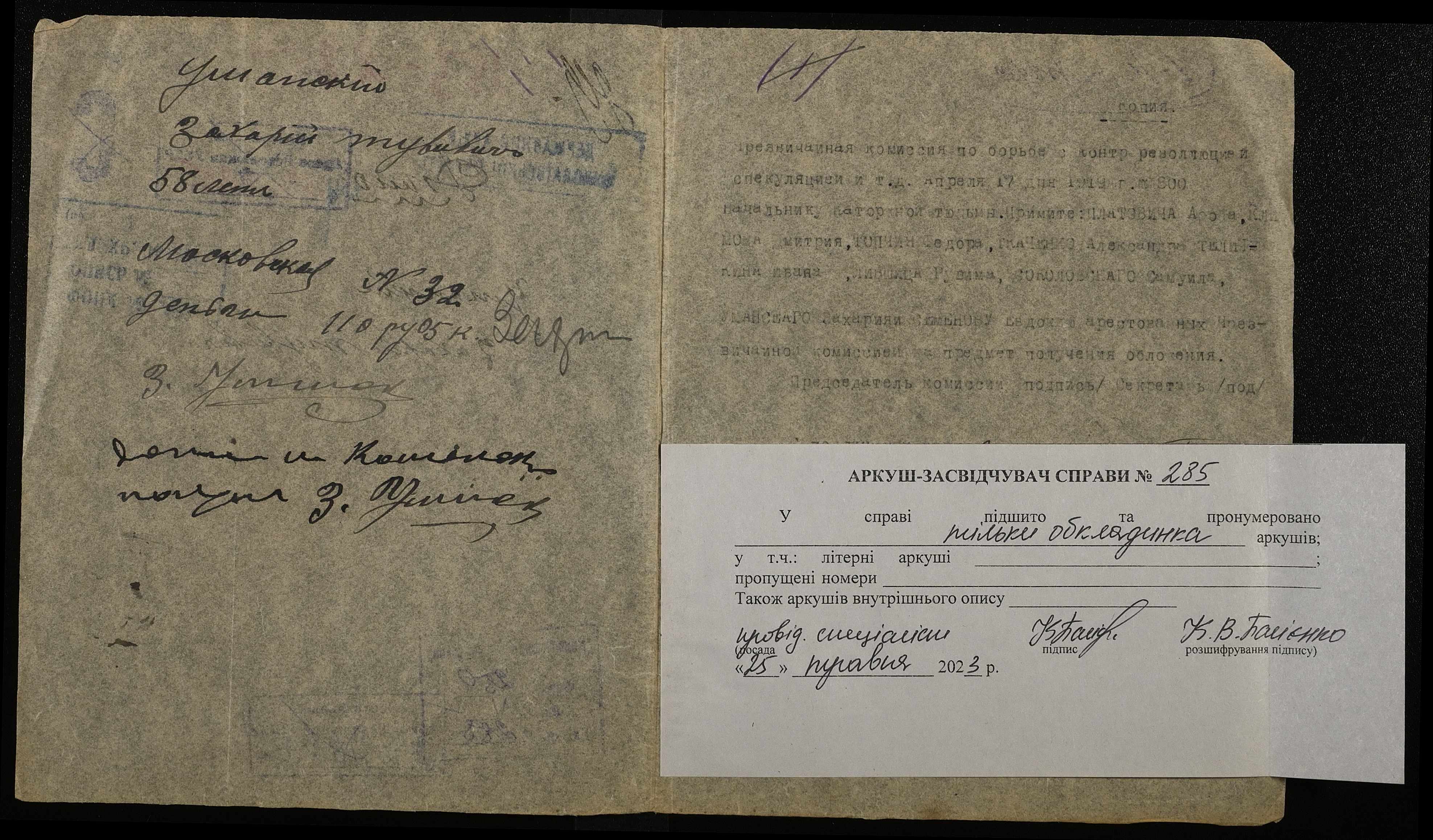 • • • • Справа № 285 “Уманський Захарій Тувивич (Уманский Захарий Тувивич)”