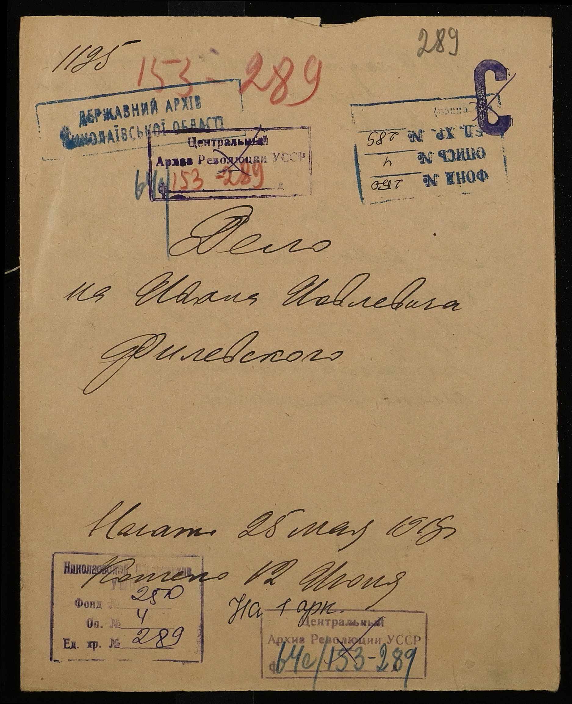 • • • • Справа № 289 “Філевський Іван Іовович (Филевский Иван Иовович)”