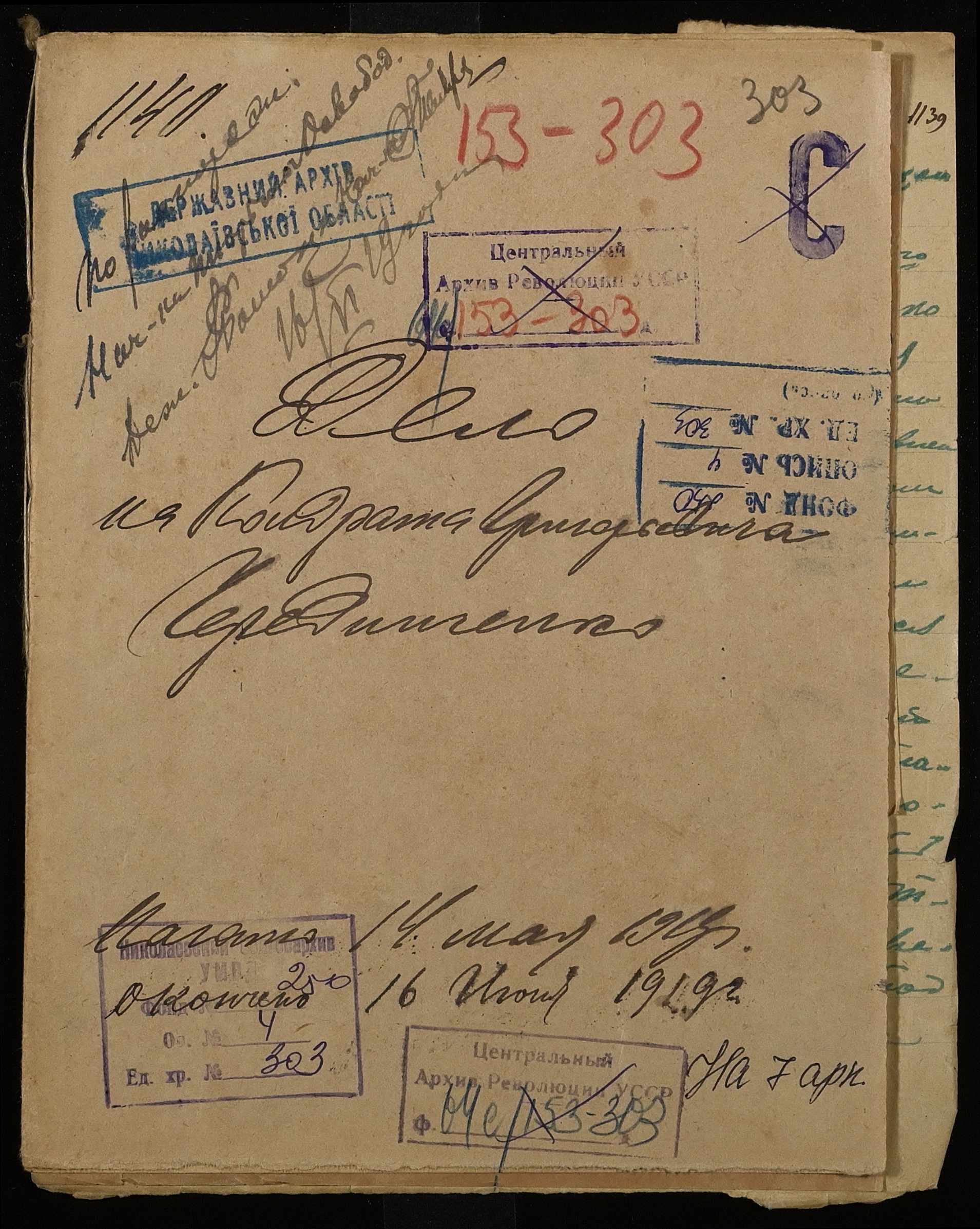 • • • • Справа № 303 “Чередниченко Кіндрат Григорович (Чередниченко Кондрат Григорович)”