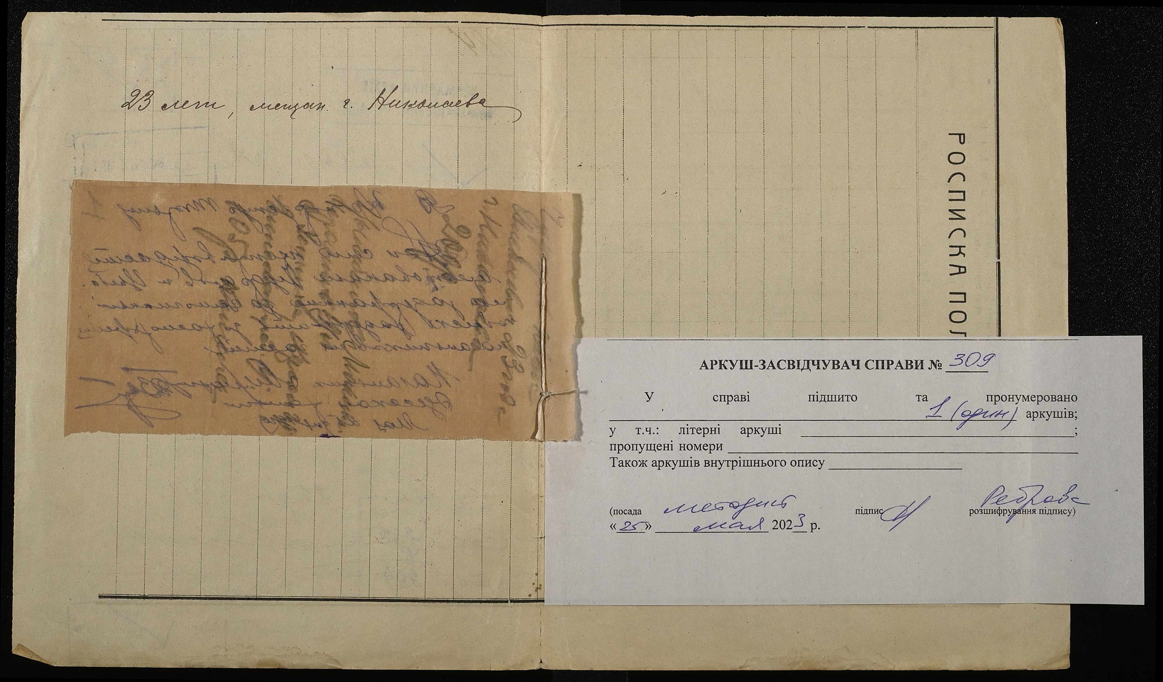 Фонд 250 / Опис 4 / Справа 309