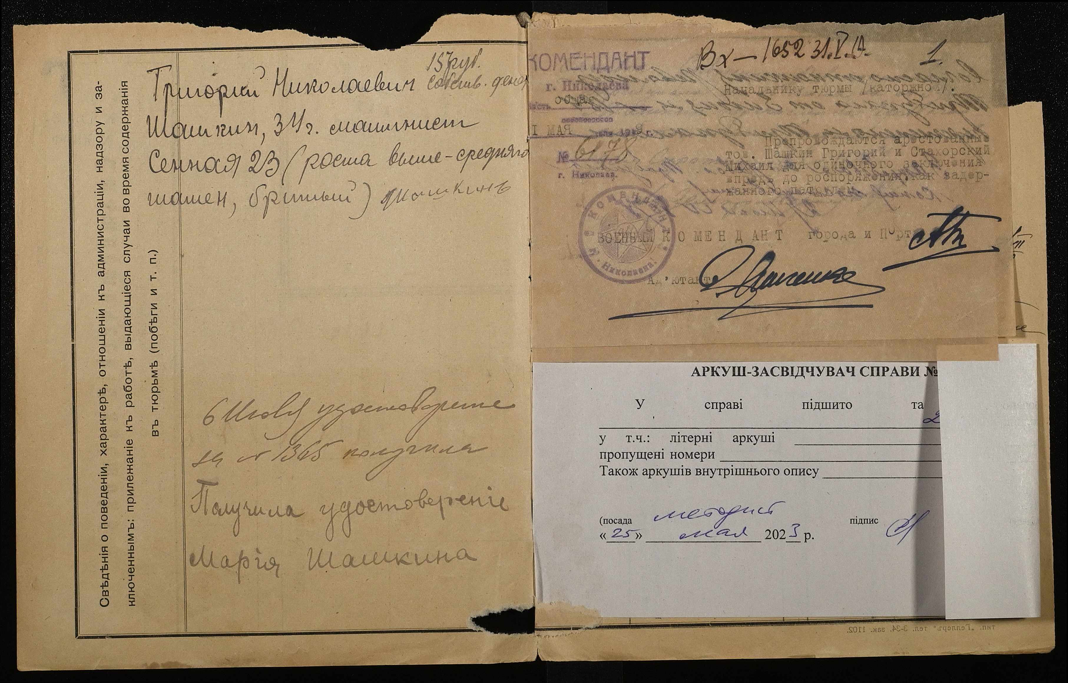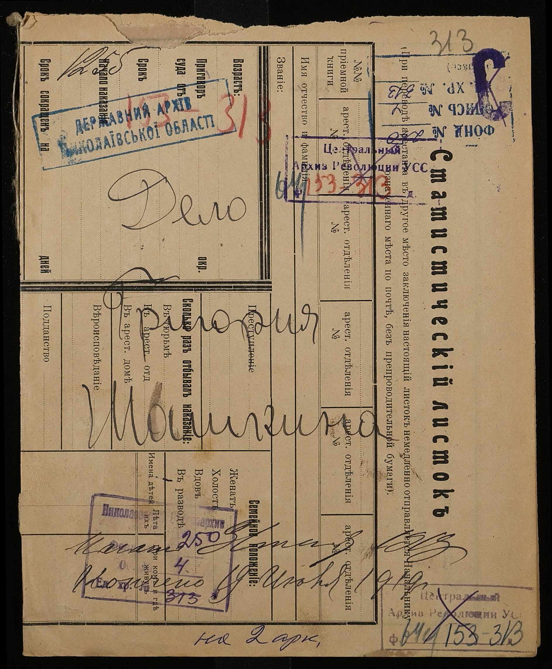 • • • • Справа № 313 “Шашкін Григорій Миколайович (Шашкин Григорий Николаевич)”