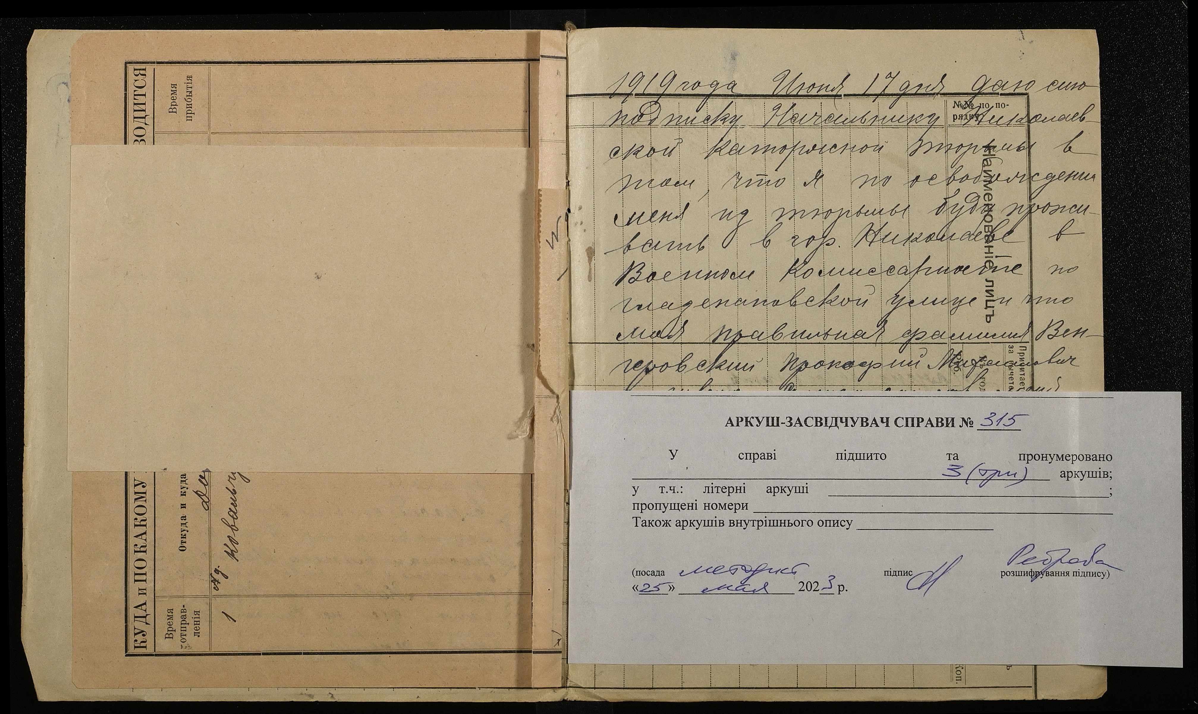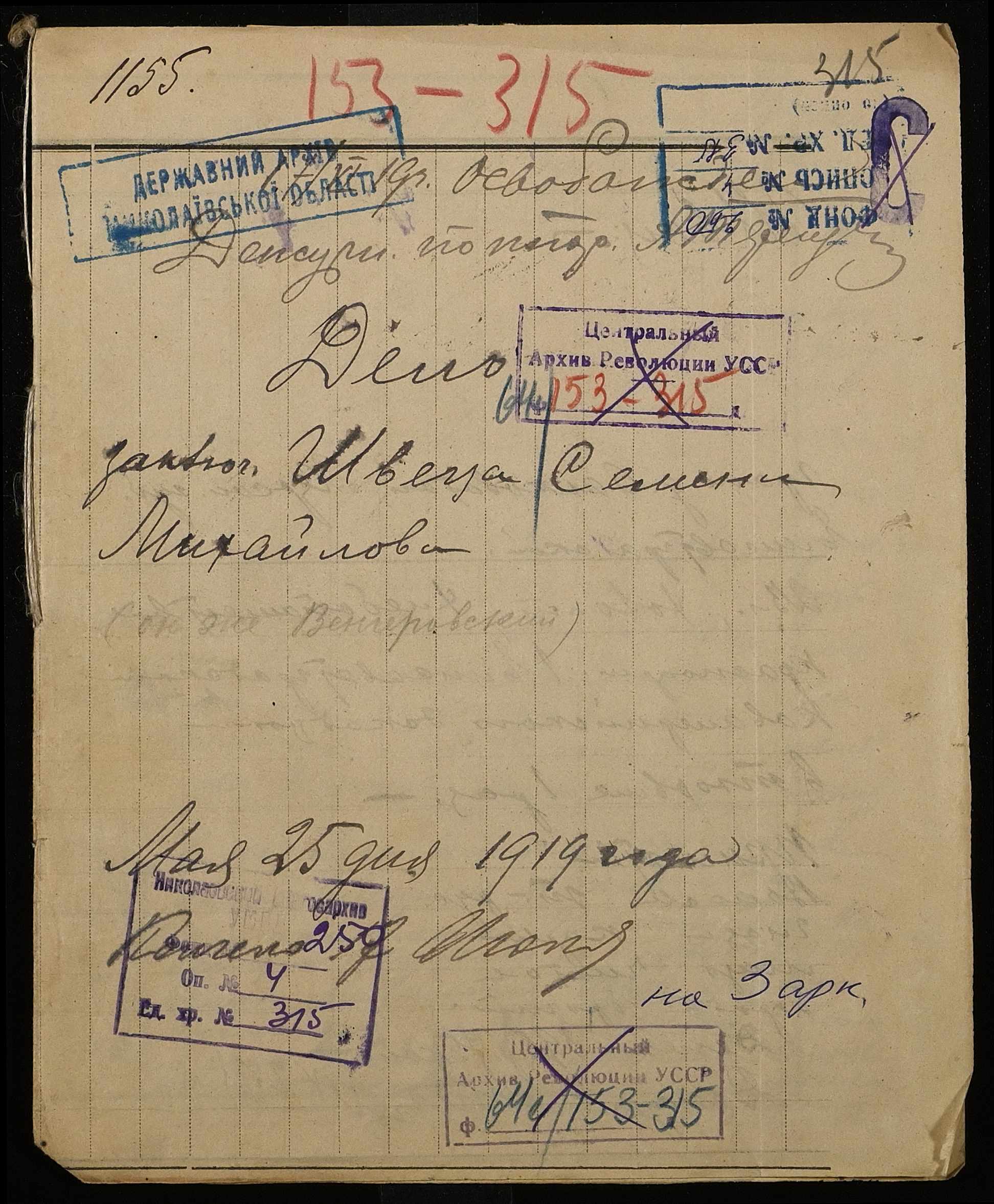 • • • • Справа № 315 “Швець [Венгеровський] Семен Михайлович (Швец [Венгеровский] Семен Михайлович)”