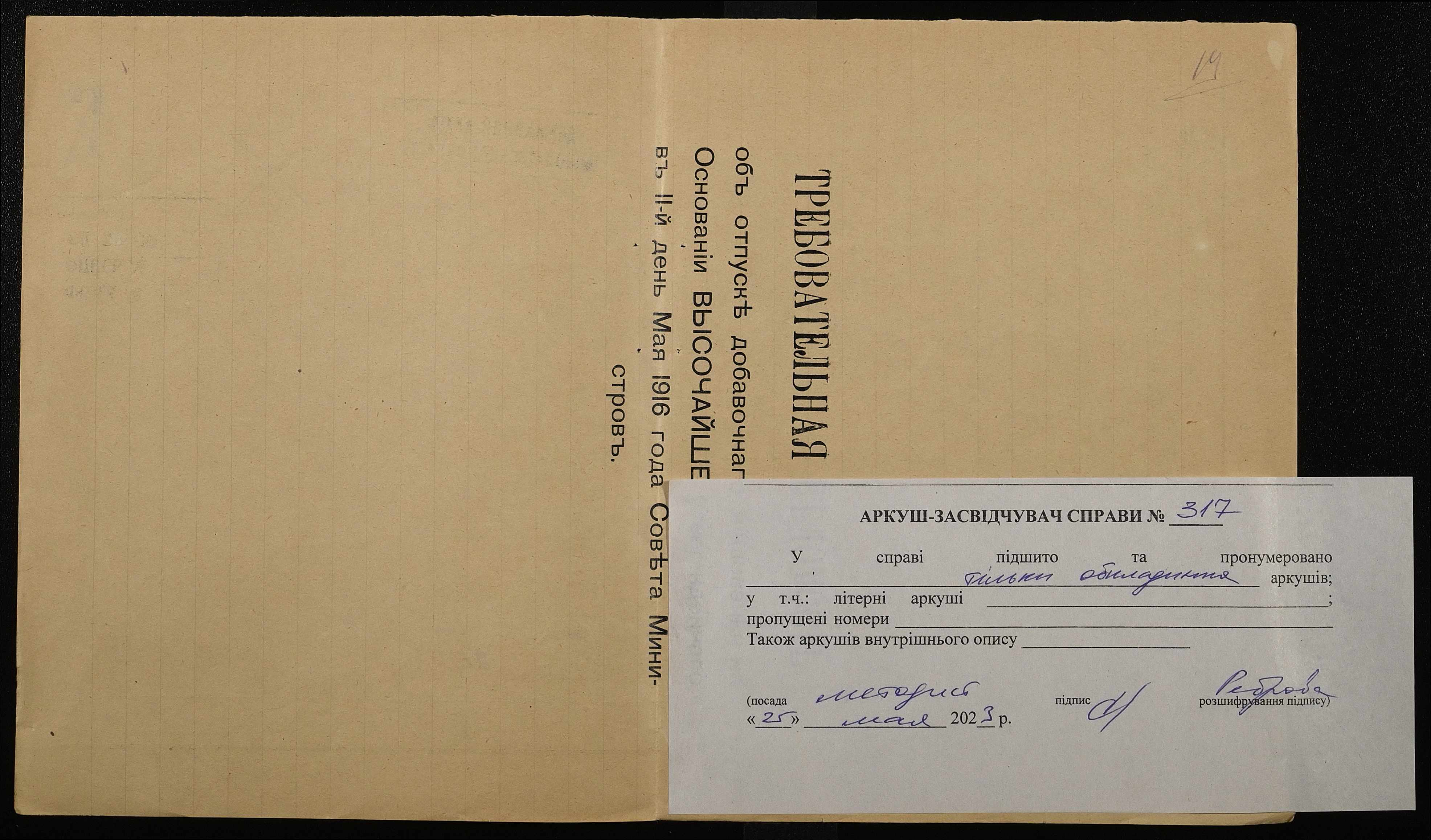 ◦ ◦ ◦ Опис № 4 справ постійного зберігання за 1916, 1918, 1919 роки