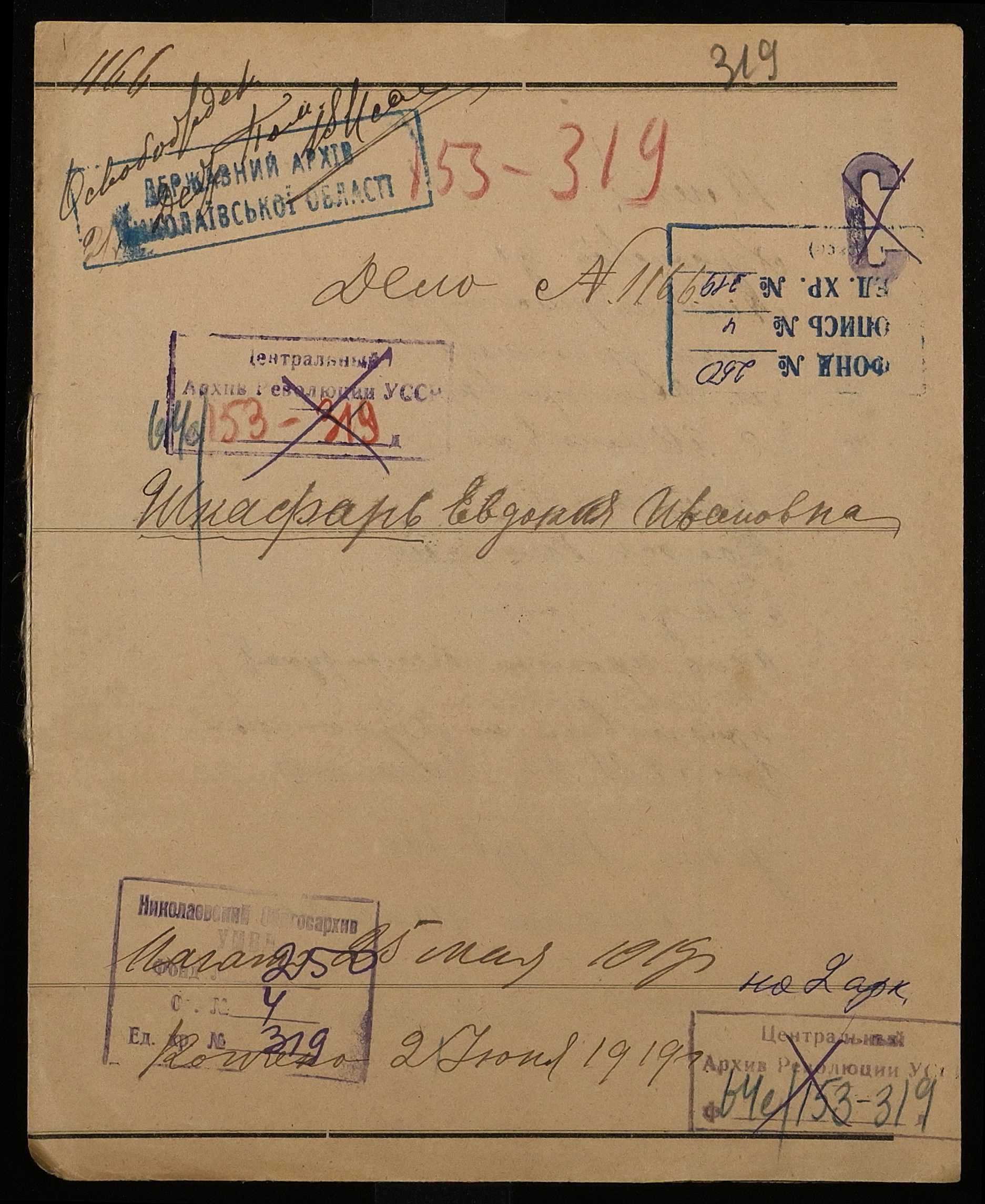 • • • • Справа № 319 “Шкафарь Євдокія Іванівна (Шкафарь Евдокия Ивановна)”