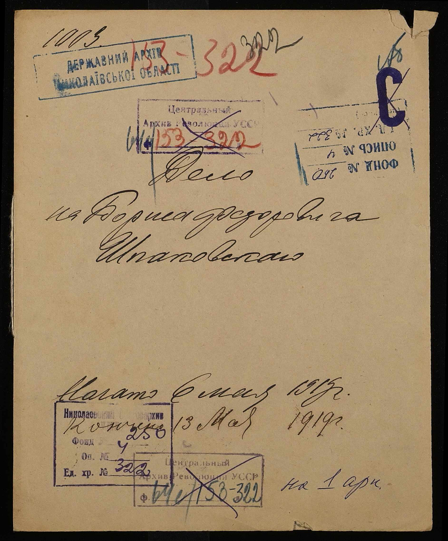 • • • • Справа № 322 “Шпаковський Борис Федорович (Шпаковский Борис Федорович)”