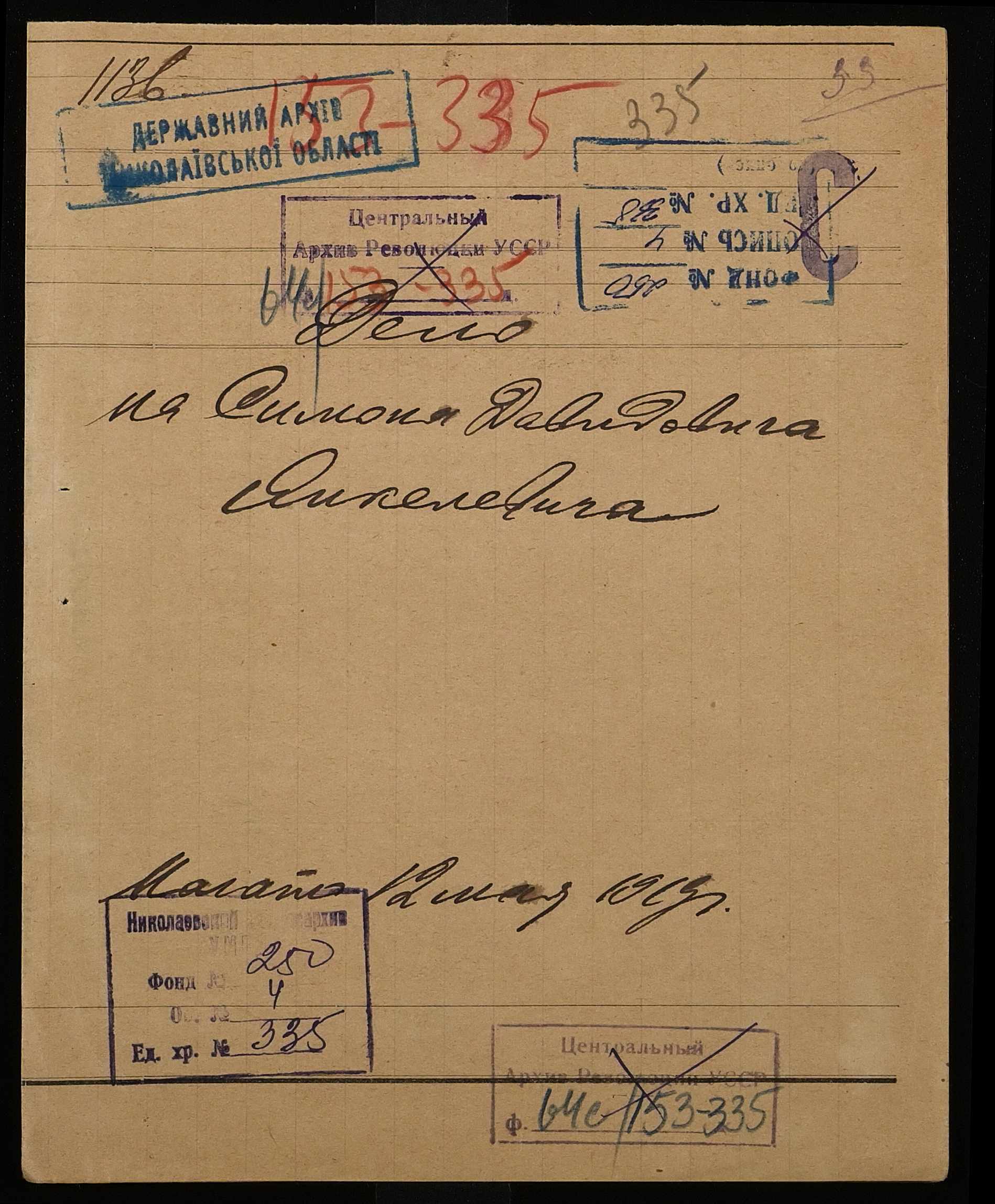 • • • • Справа № 335 “Янкелевич Симон Давидович (Янкелевич Симон Давидович)”
