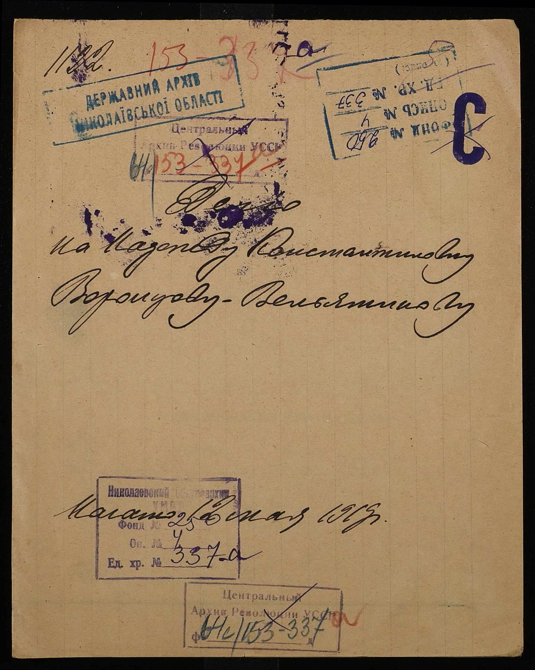 • • • • Справа № 337а “Воронцова-Вельямінова Надія Костянтинівна (Воронцова-Вельяминова Надежда Константиновна)”