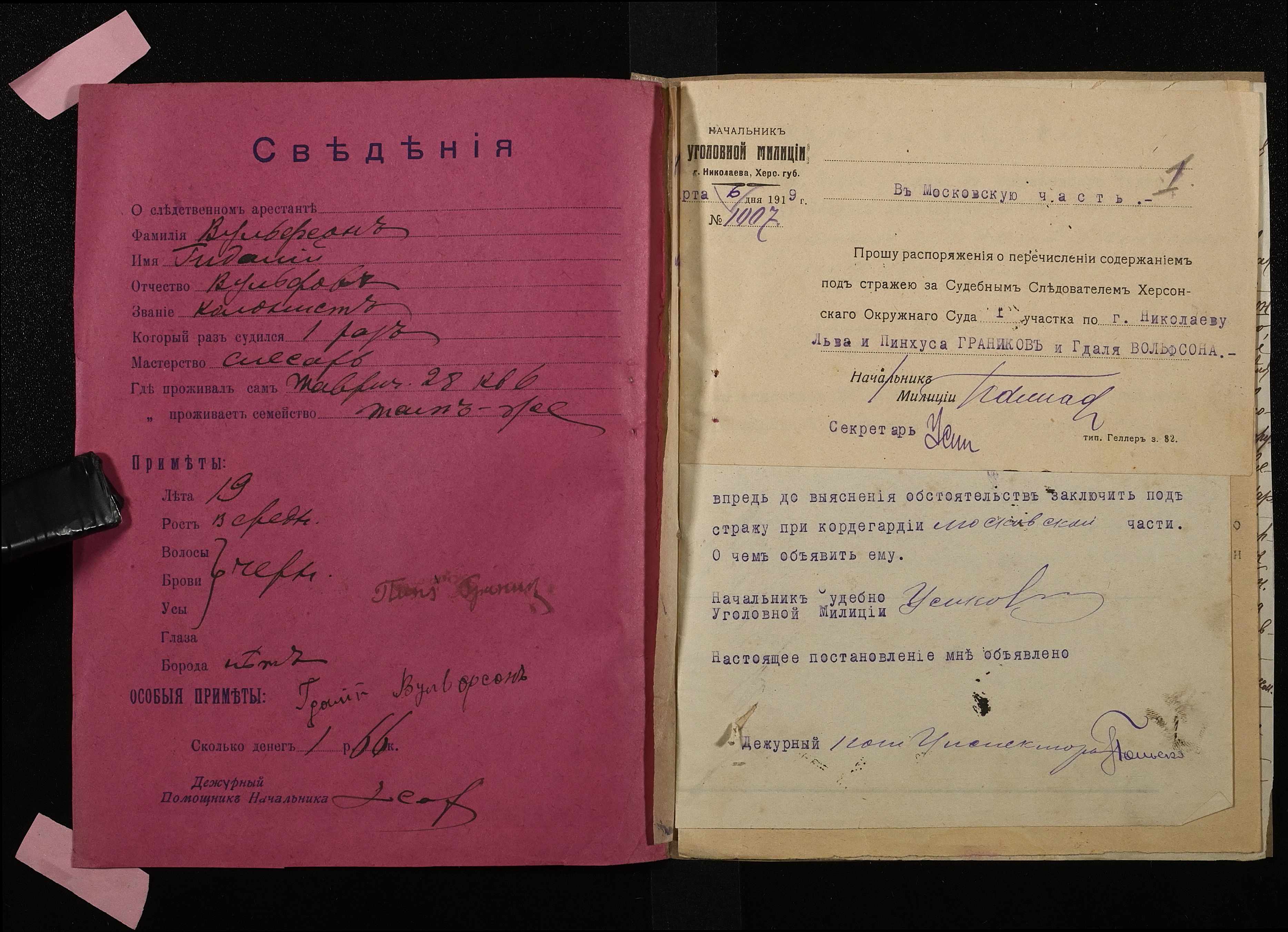• • • • Справа № 340 “Вольфсон Гідалій Вульфович (Вольфсон Гидалий Вульфович)”