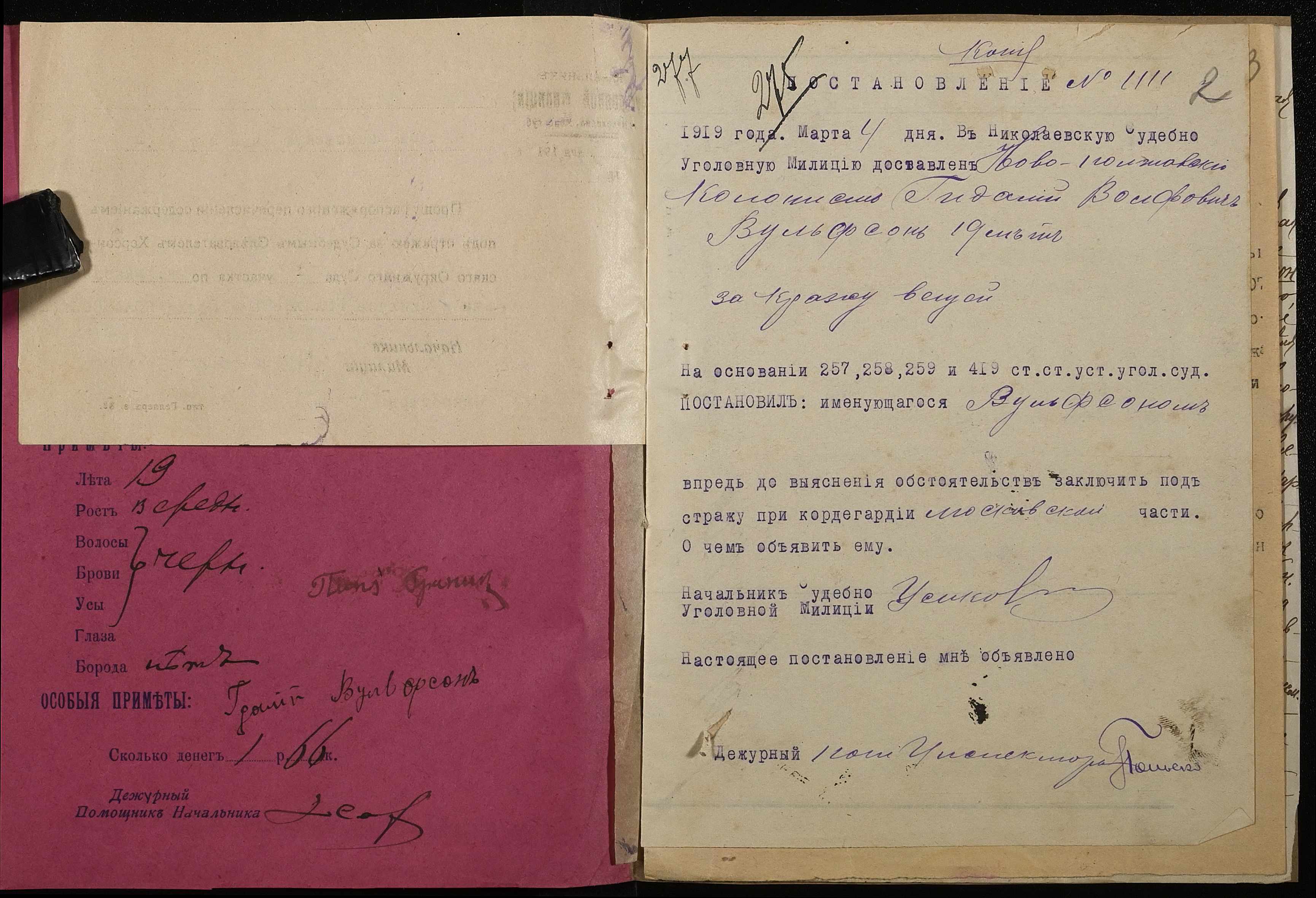 ◦ ◦ ◦ Опис № 4 справ постійного зберігання за 1916, 1918, 1919 роки