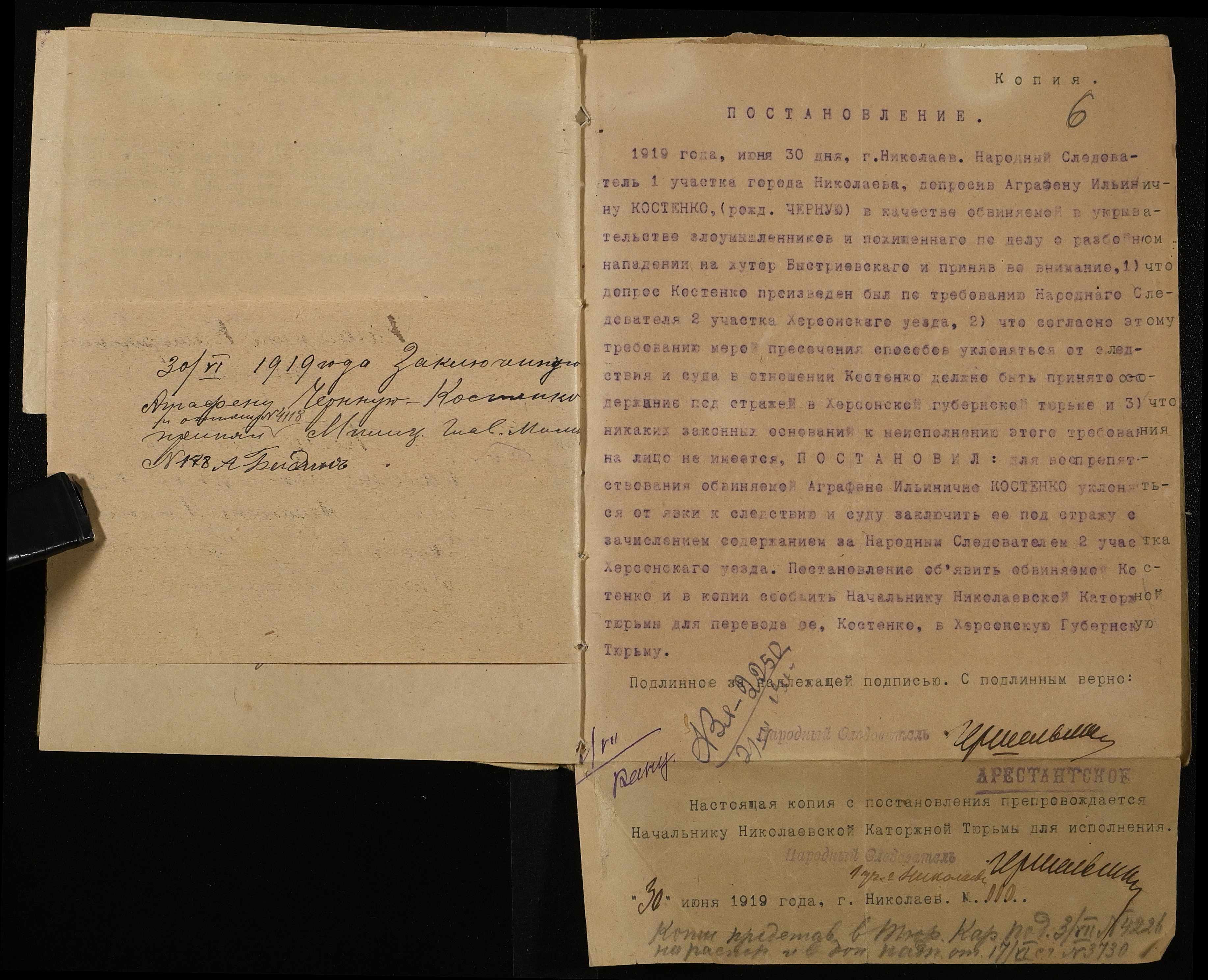 • • • • Справа № 346 “Чорна-Костенко Аграфена Іллівна (Черная-Костенко Аграфена Ильинична)”