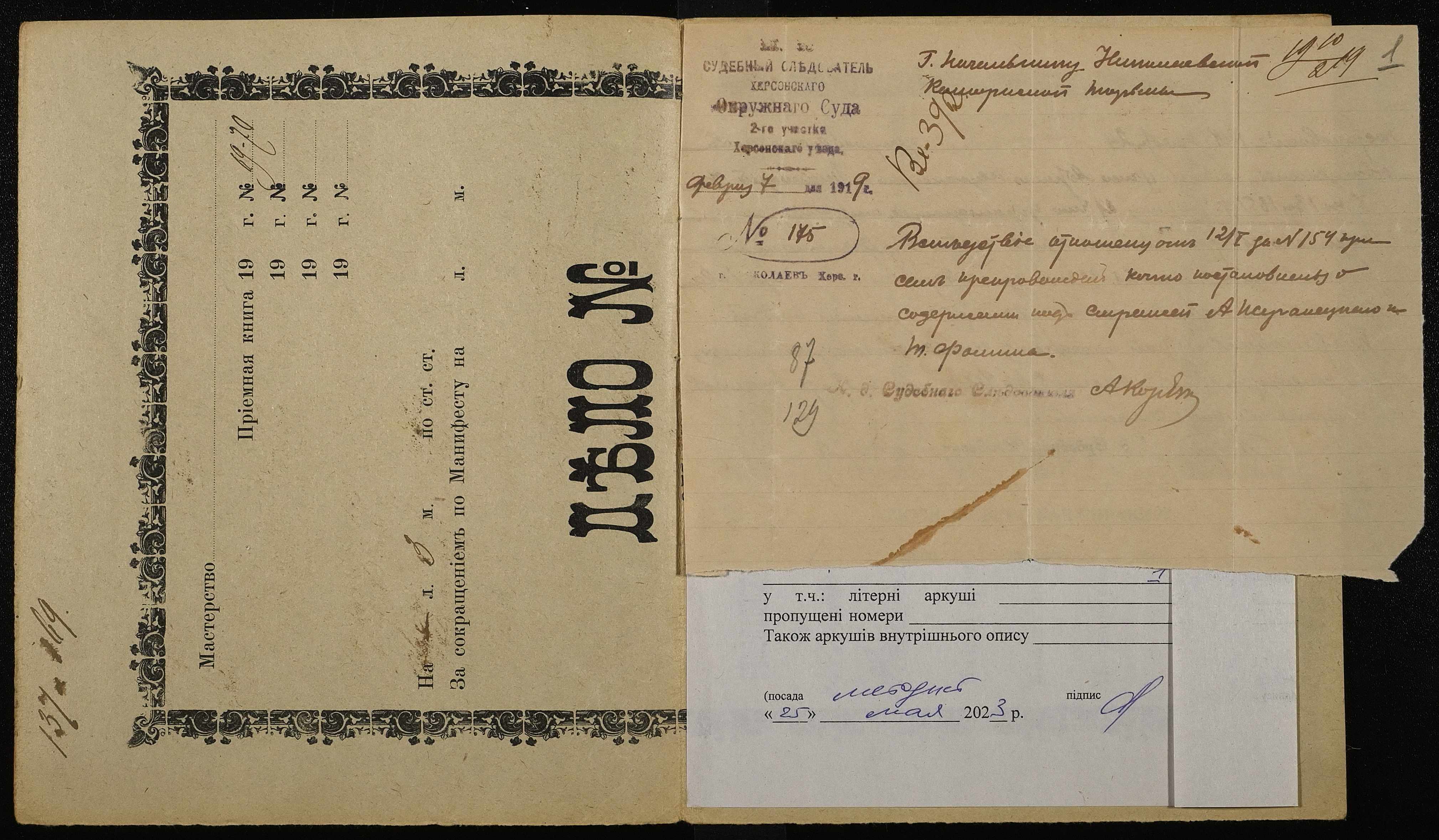 ◦ ◦ ◦ Опис № 4 справ постійного зберігання за 1916, 1918, 1919 роки