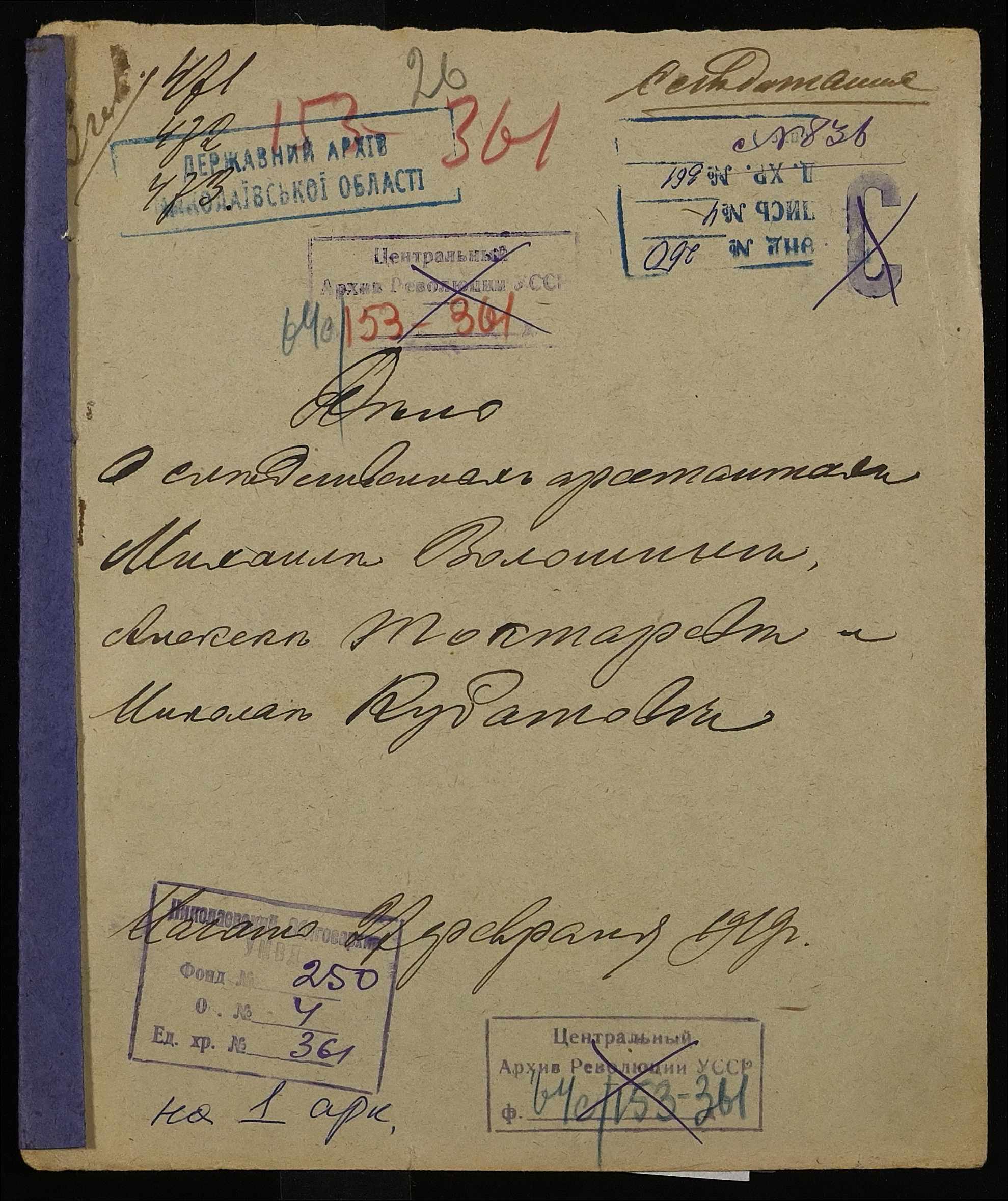 • • • • Справа № 361 “Волошин Михайло Семенович (Волошин Михаил Семенович), Токтарьов Олексій Автономович (Токтарев Алексей Автономович), Кубатов Микола (Кубатов Николай)”