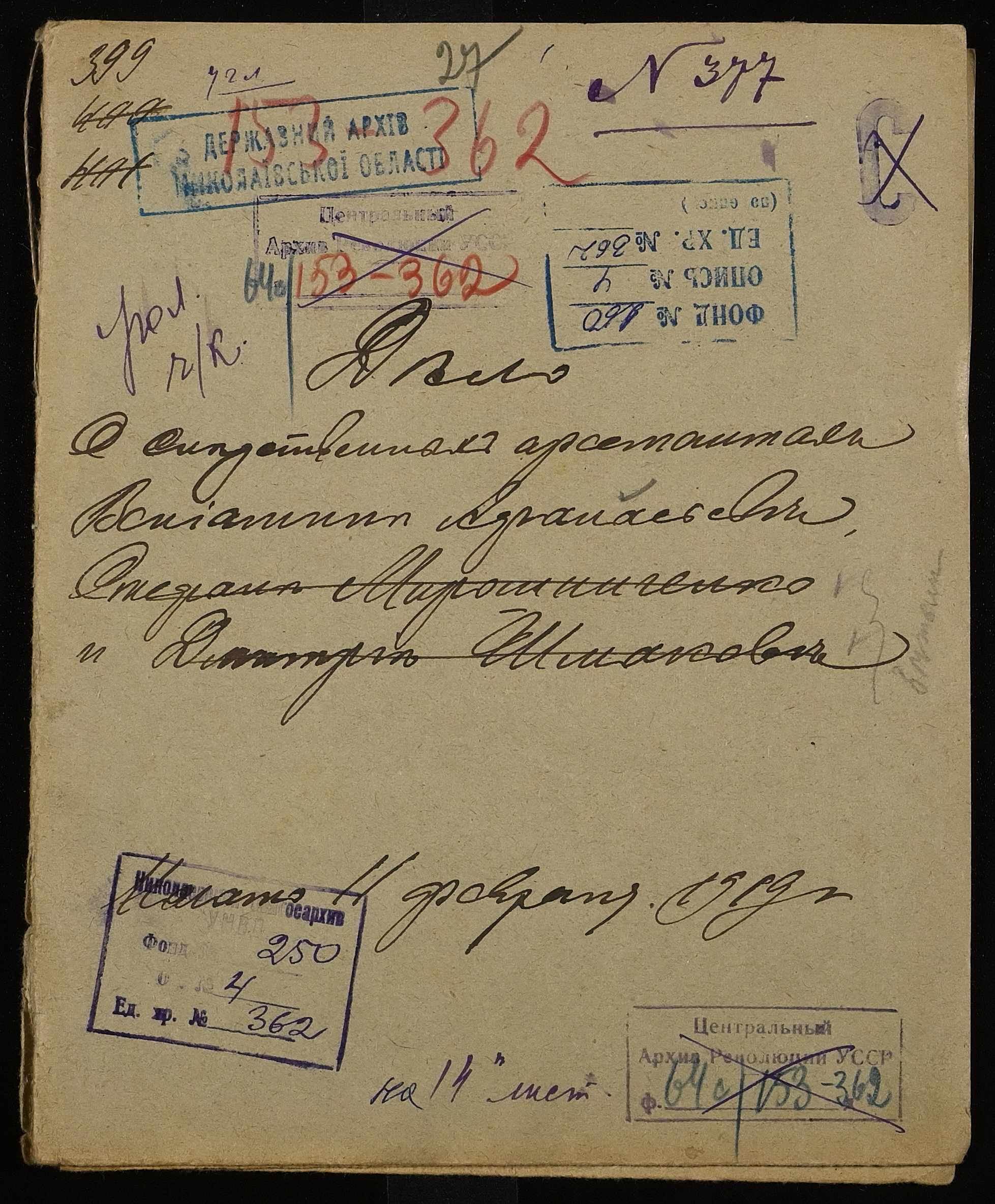 • • • • Справа № 362 “Шмаков Дмитро Афанасійович (Шмаков Дмитрий Афанасьевич), Афанасьєв Веніамін Афанасійович (Афанасьев Вениамин Афанасьевич), Мирошниченко Стефан Ілліч (Мирошниченко Стефан Ильич)”