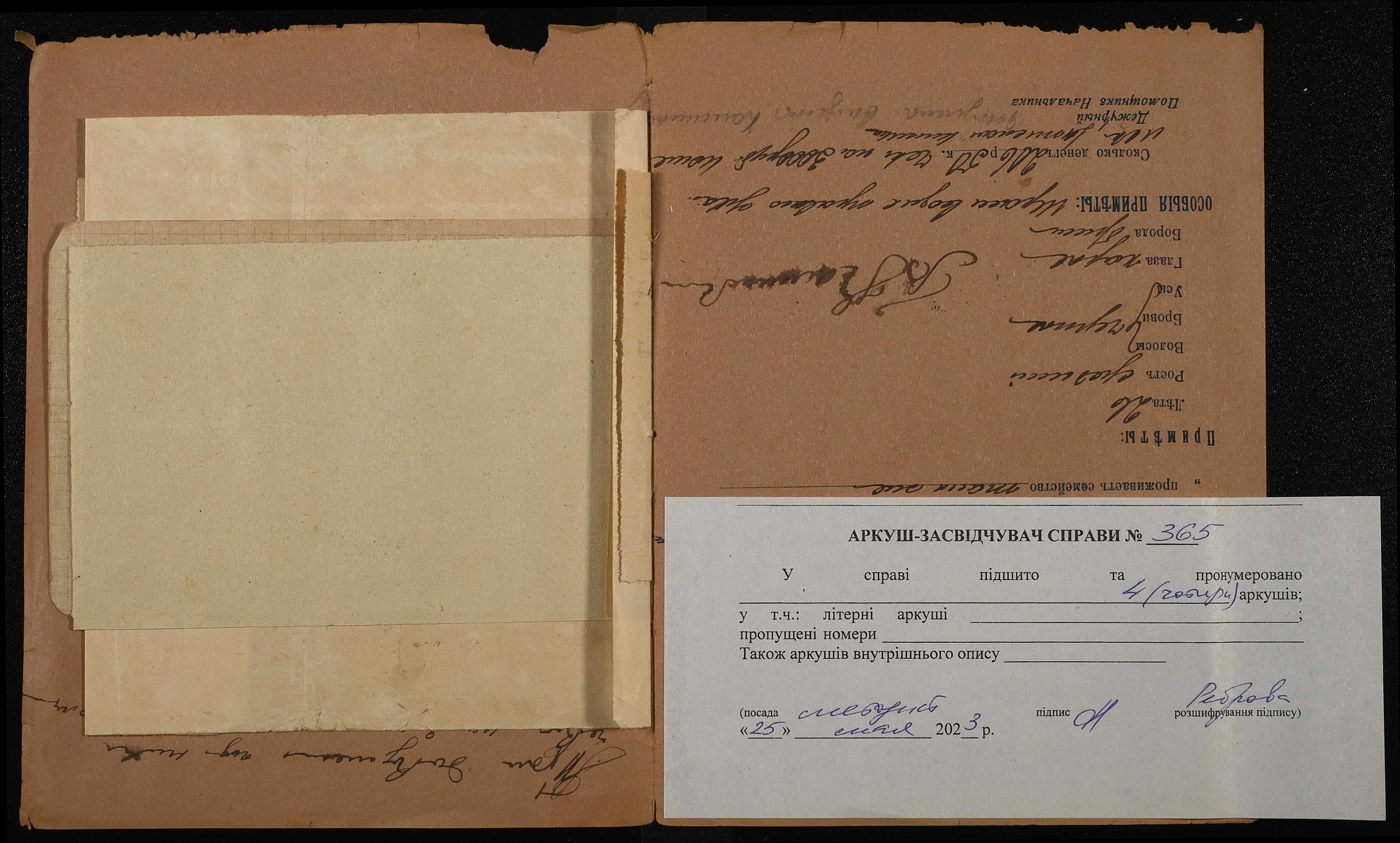 • • • • Справа № 365 “Візнюк Олена (ВизнюкЕлена), Пузирицький Василь (Пузырицкий Василий), Ошелович Осип (Ошелович Осип), Зайцев Павло (Зайцев Павел), Трофальський Петро (Трофальский Петр)”