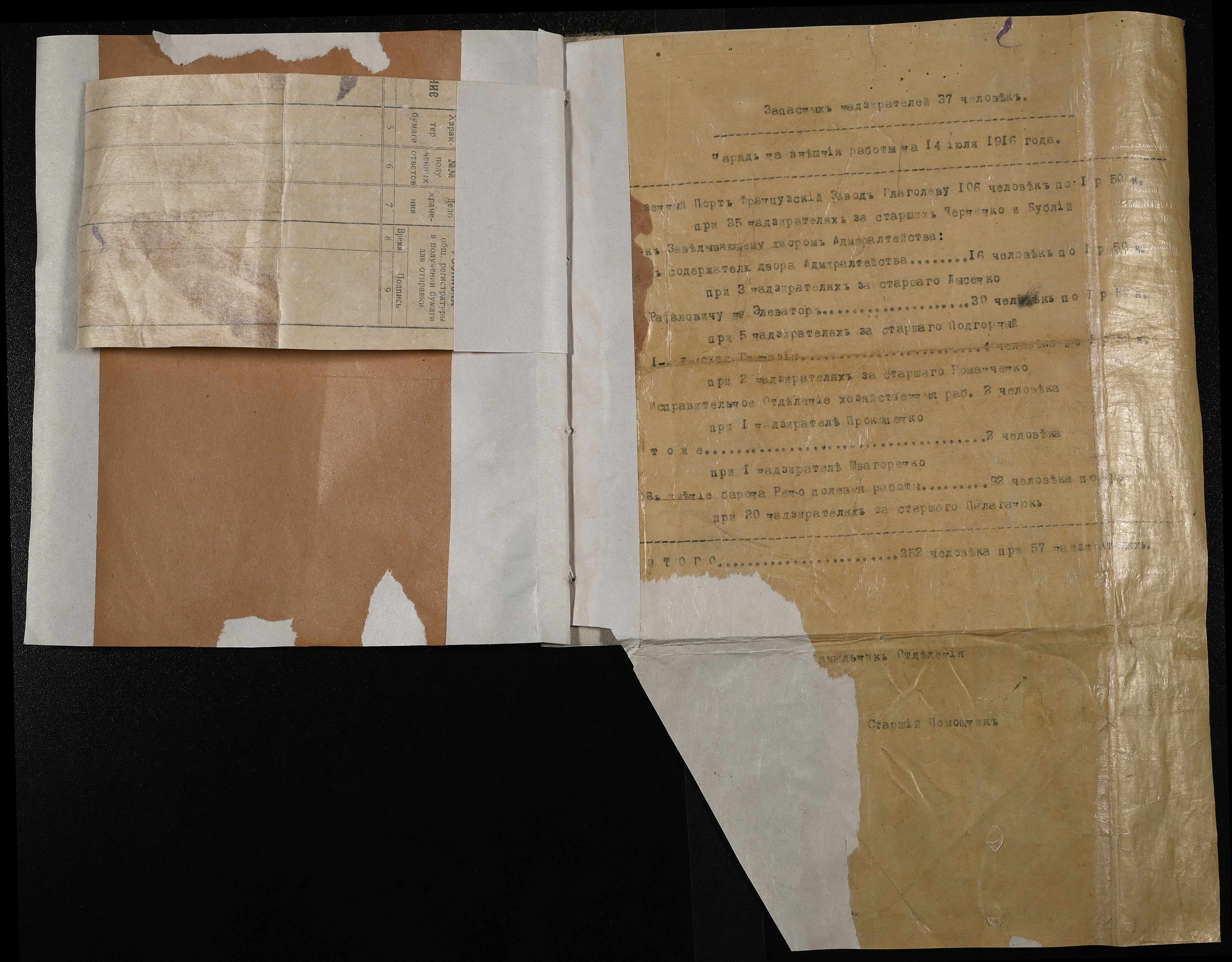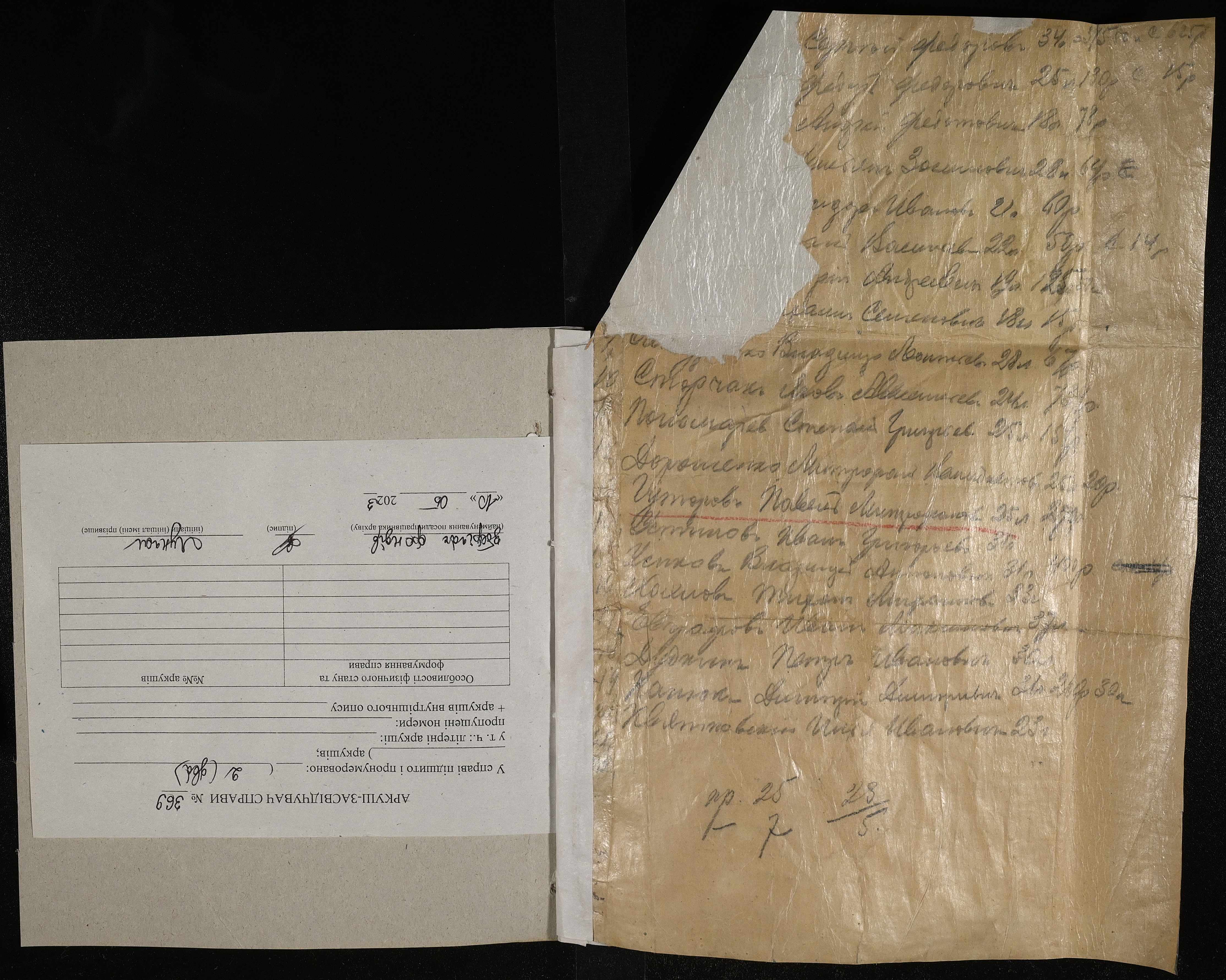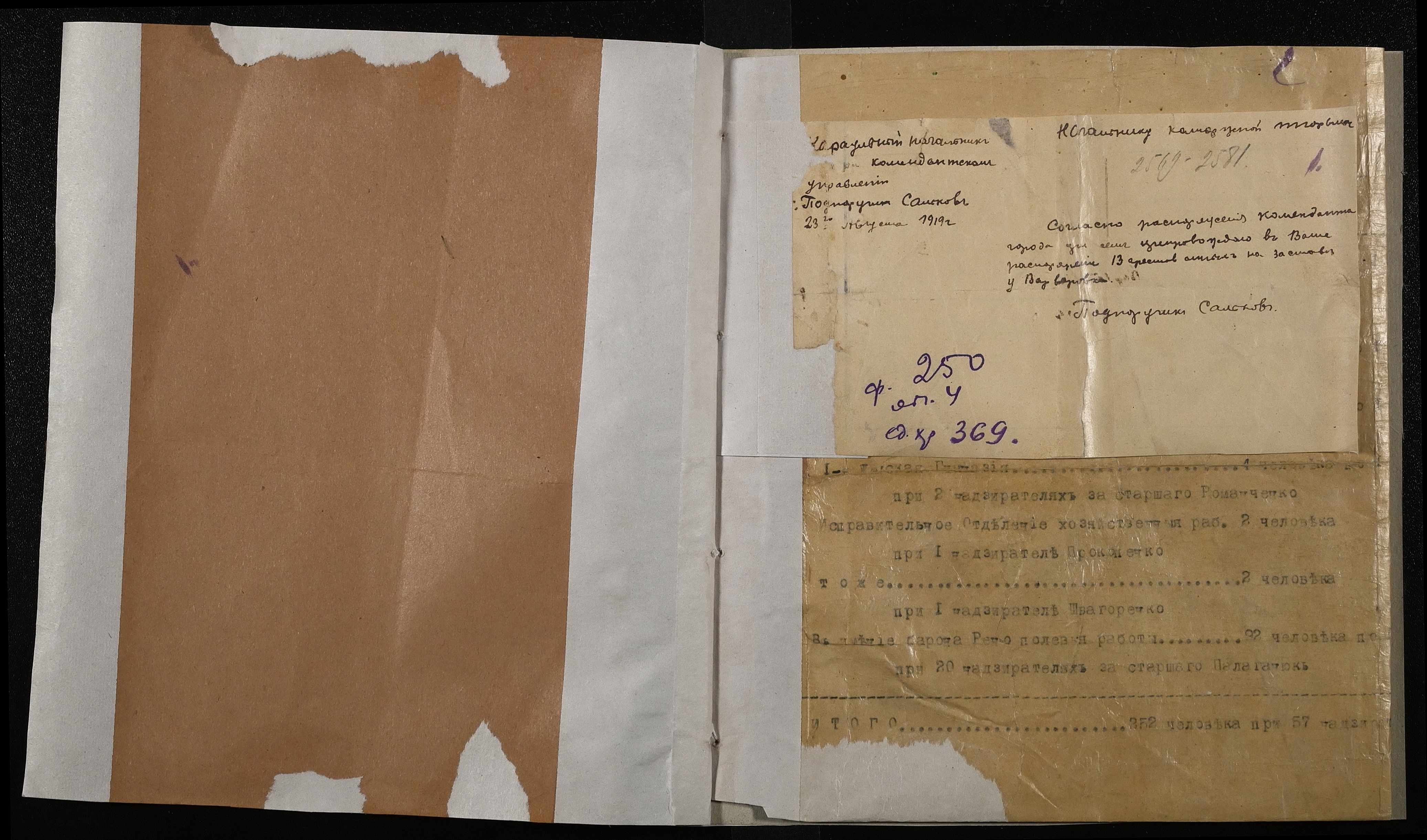 • • • • Справа № 369 “Листування з караульним начальником комендантського управління про направлення в’язнів на роботи. Наряд на роботи за межами тюрми”