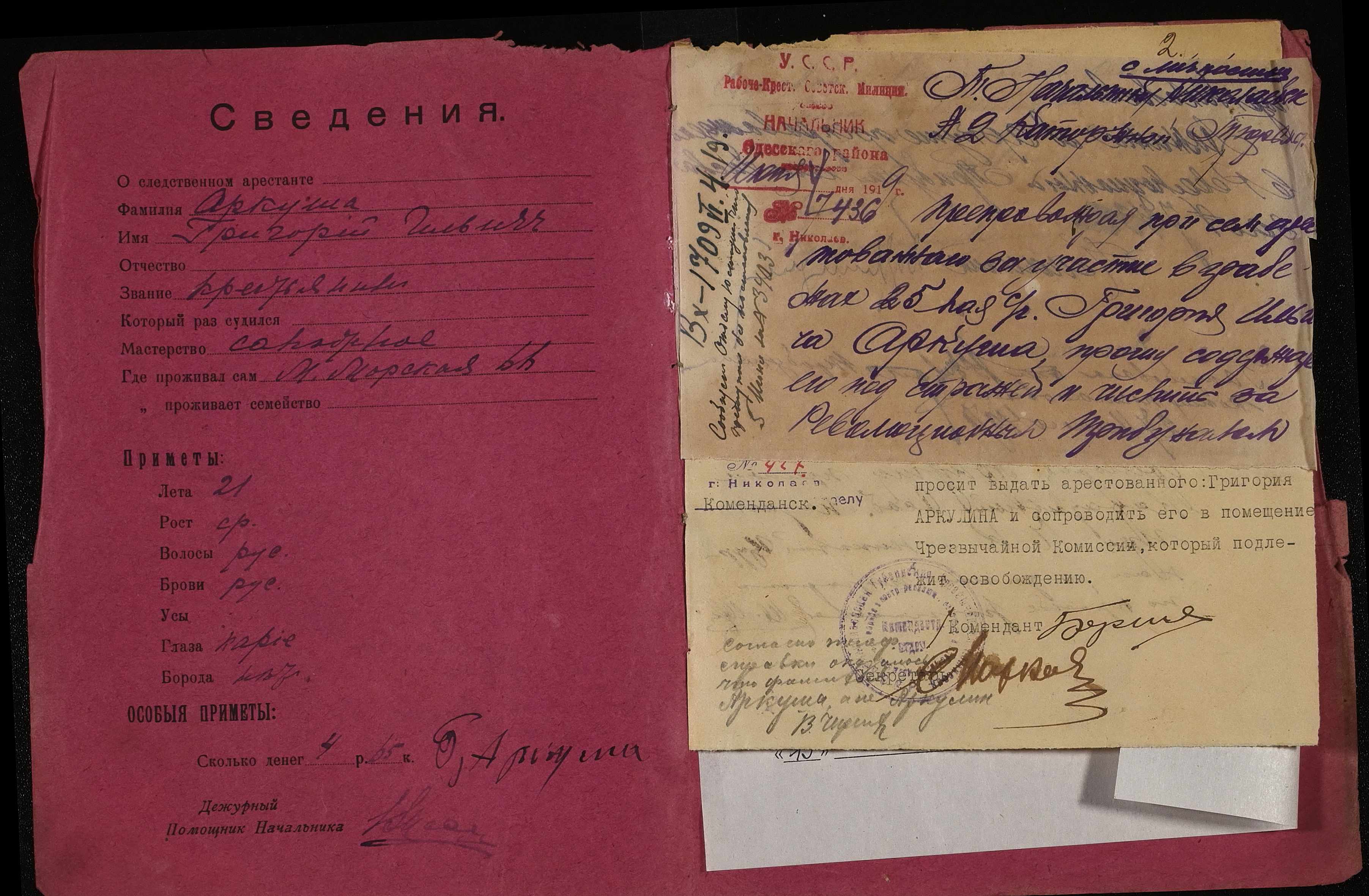 • • • • Справа № 22 Аркуш Григорій Ілліч (Аркуш Григорий Ильич)