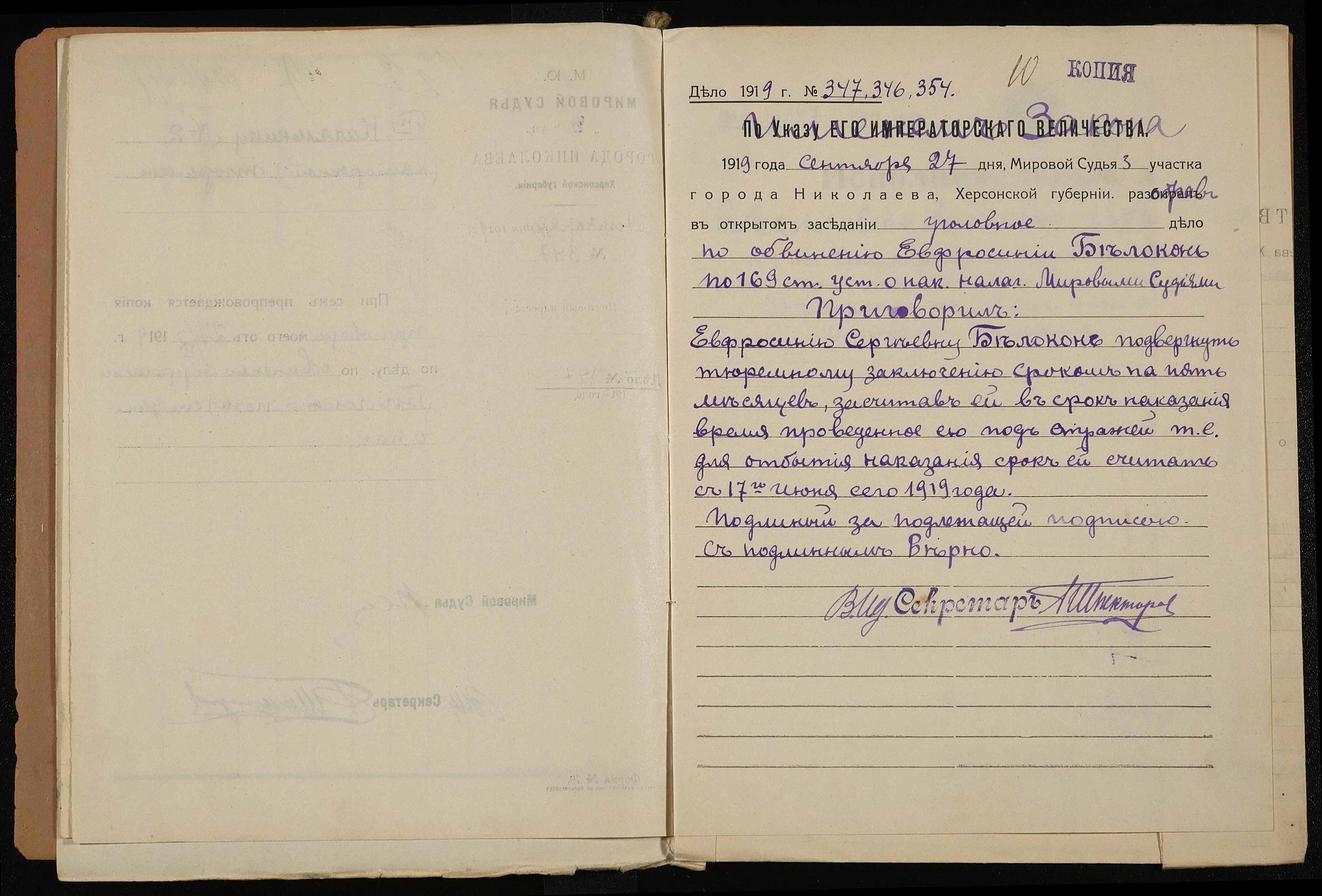 • • • • Справа № 61 Бєлоконь Єфросинія Сергіївна (Белоконь Ефросиния Сергеевна)