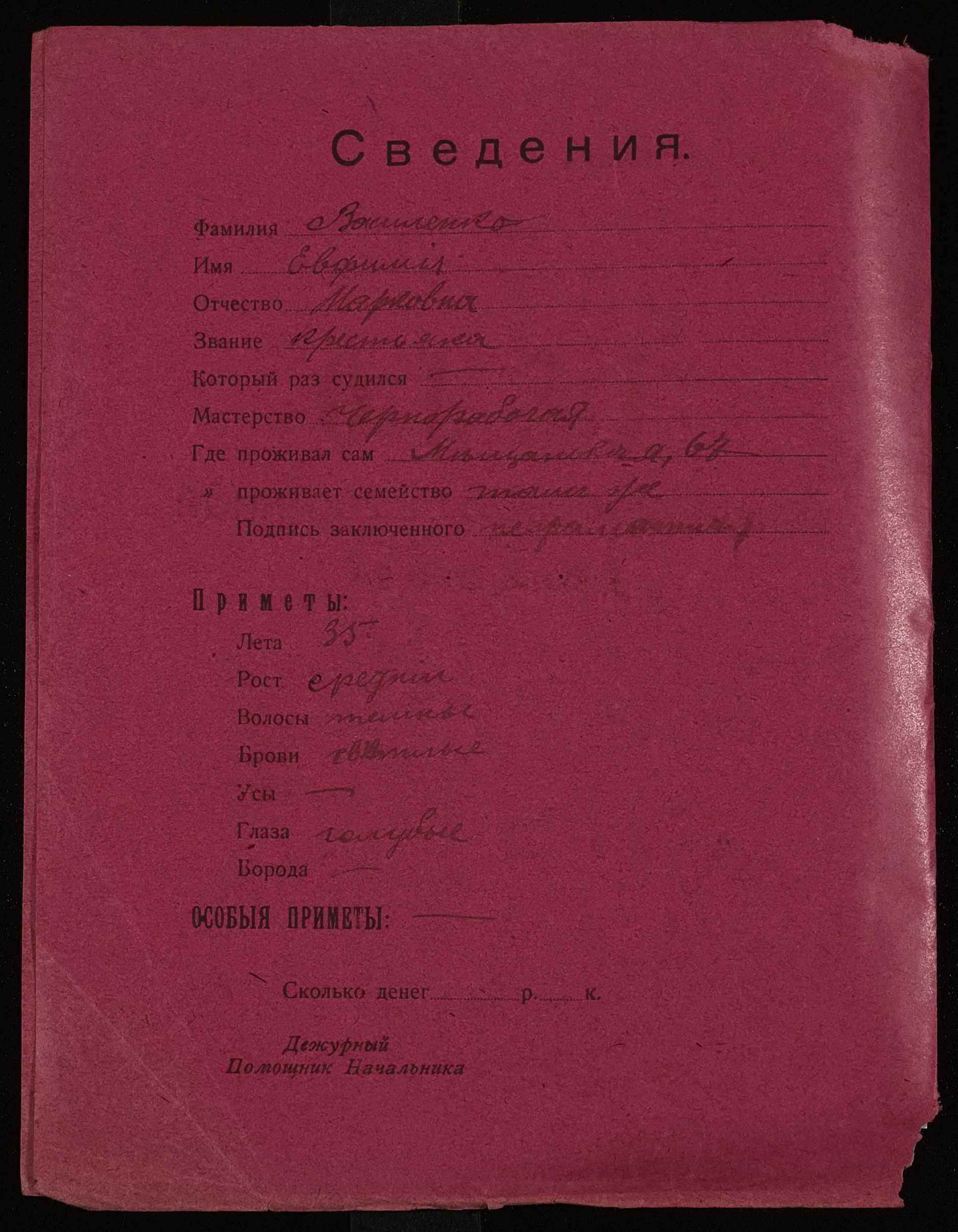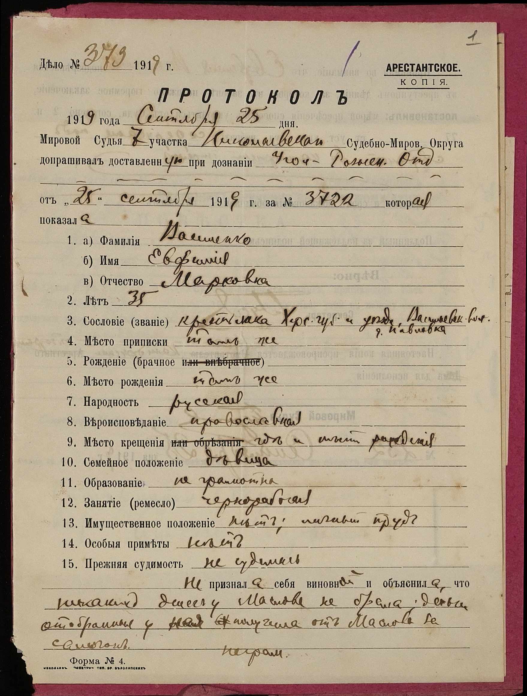 • • • • Справа № 127 Василенко Євфімія Марківна (Василенко Евфимия Марковна)