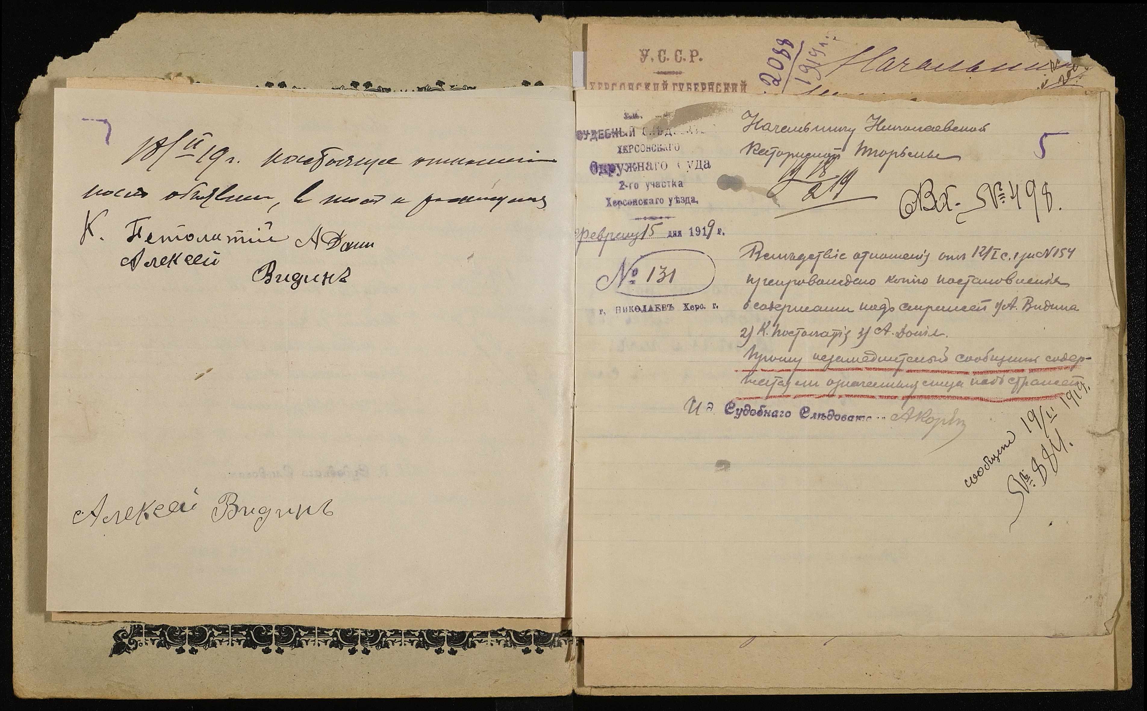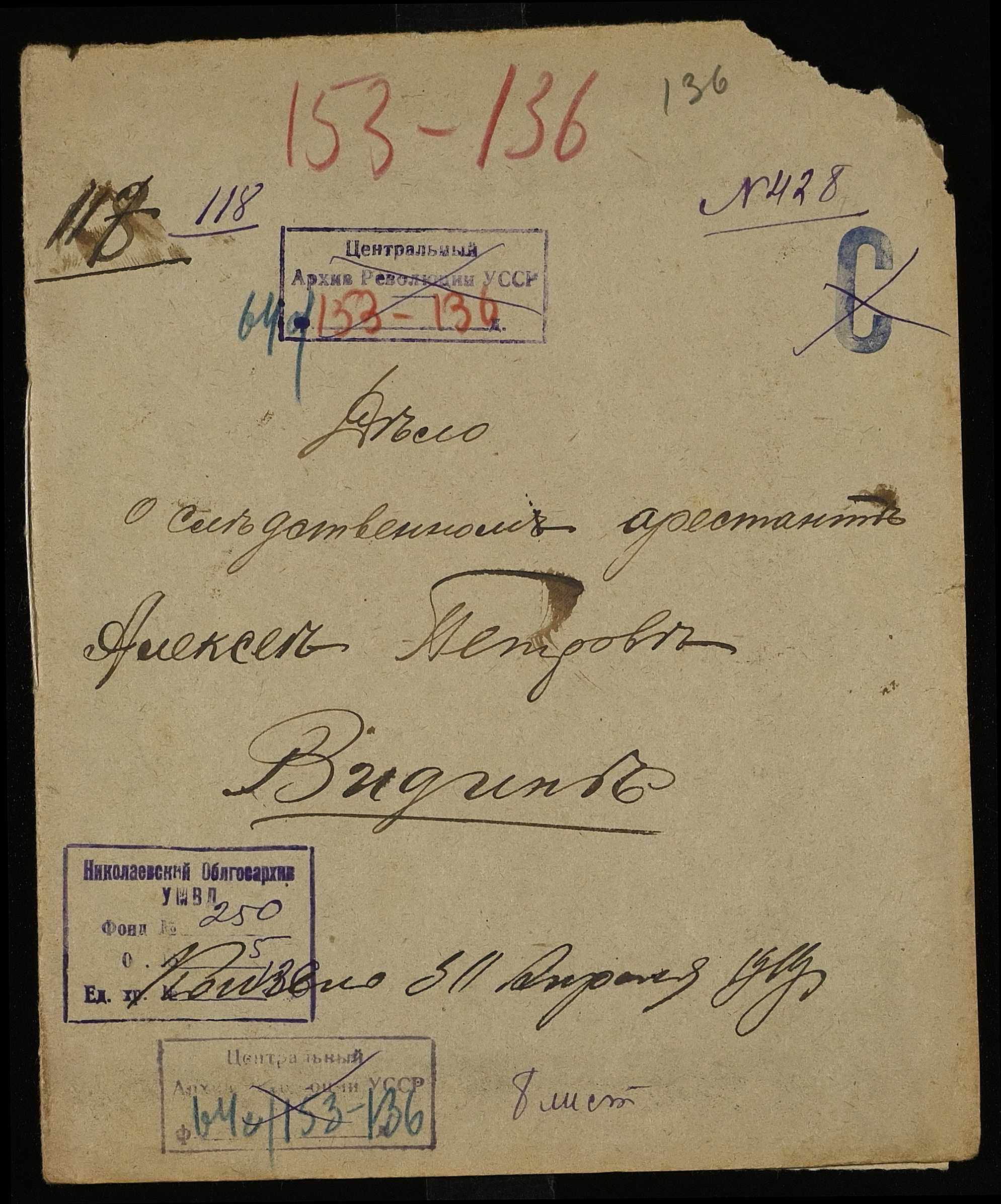 • • • • Справа № 136 Відін Олексій Петрович (Видин Алексей Петрович)