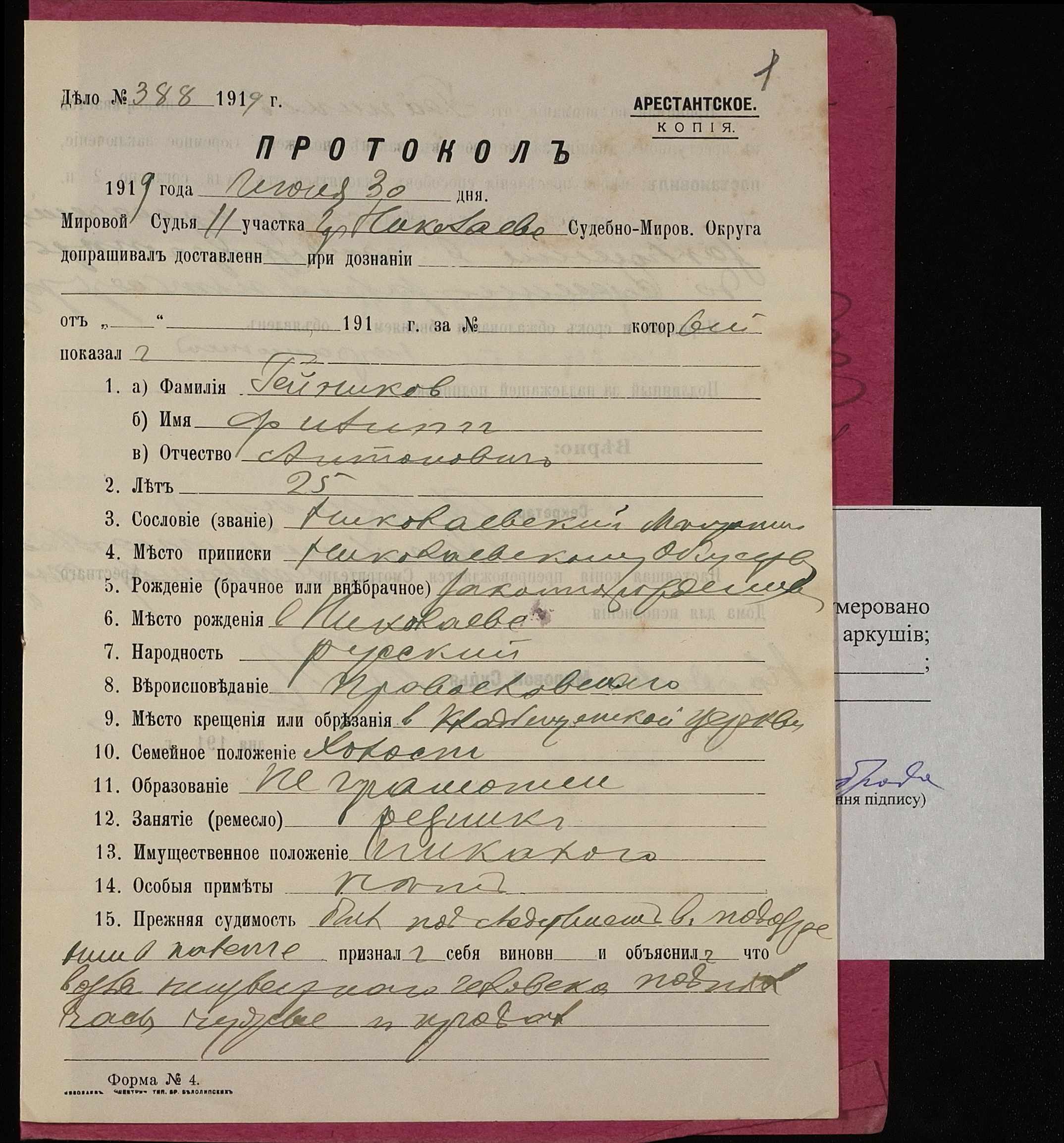 • • • • Справа № 188 Гейніков Пилип Антонович (Гейников Филипп Антонович)
