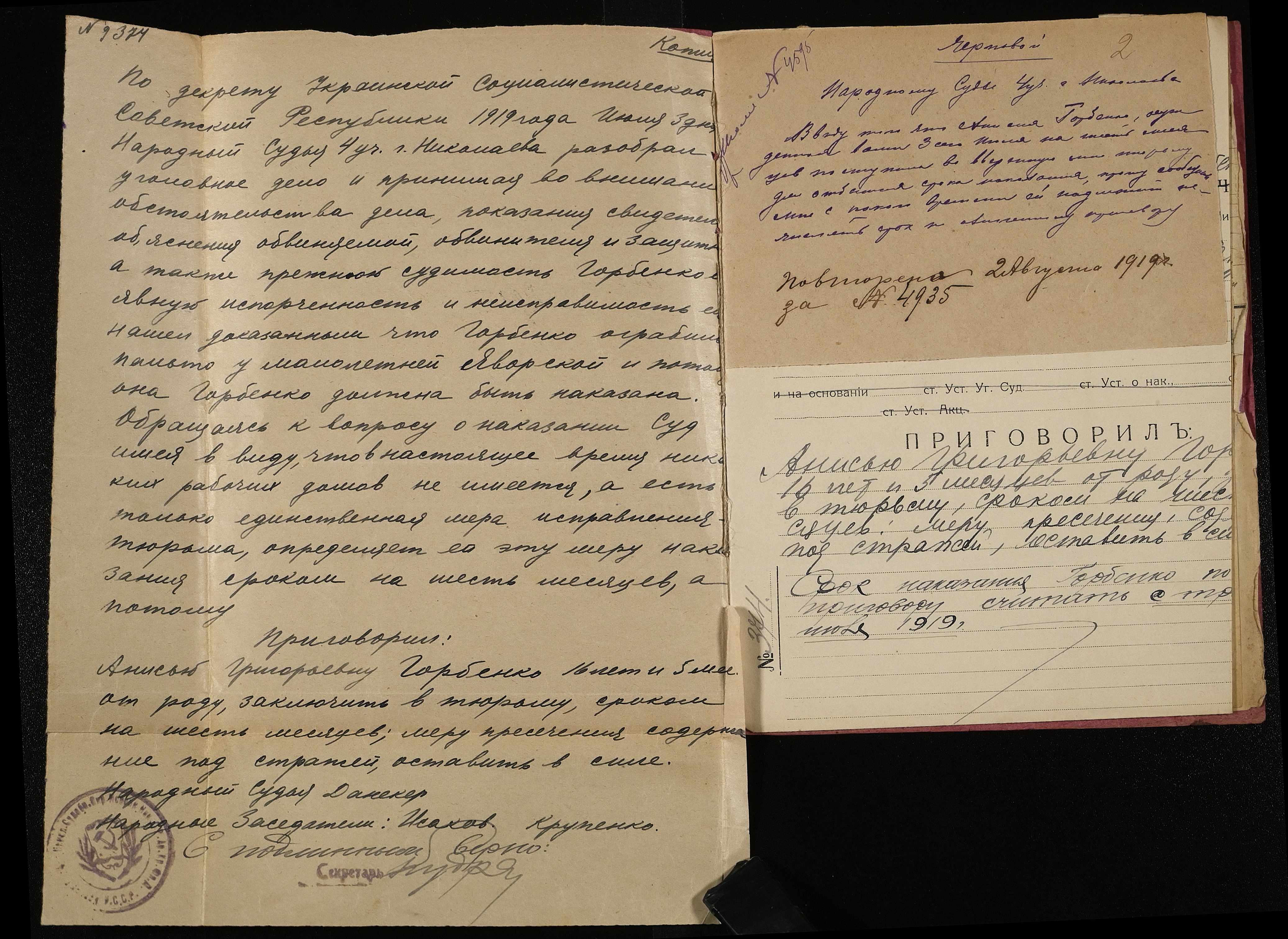 • • • • Справа № 219 Горбенко Анісія Григорівна (Горбенко Анисия Григорьевна)