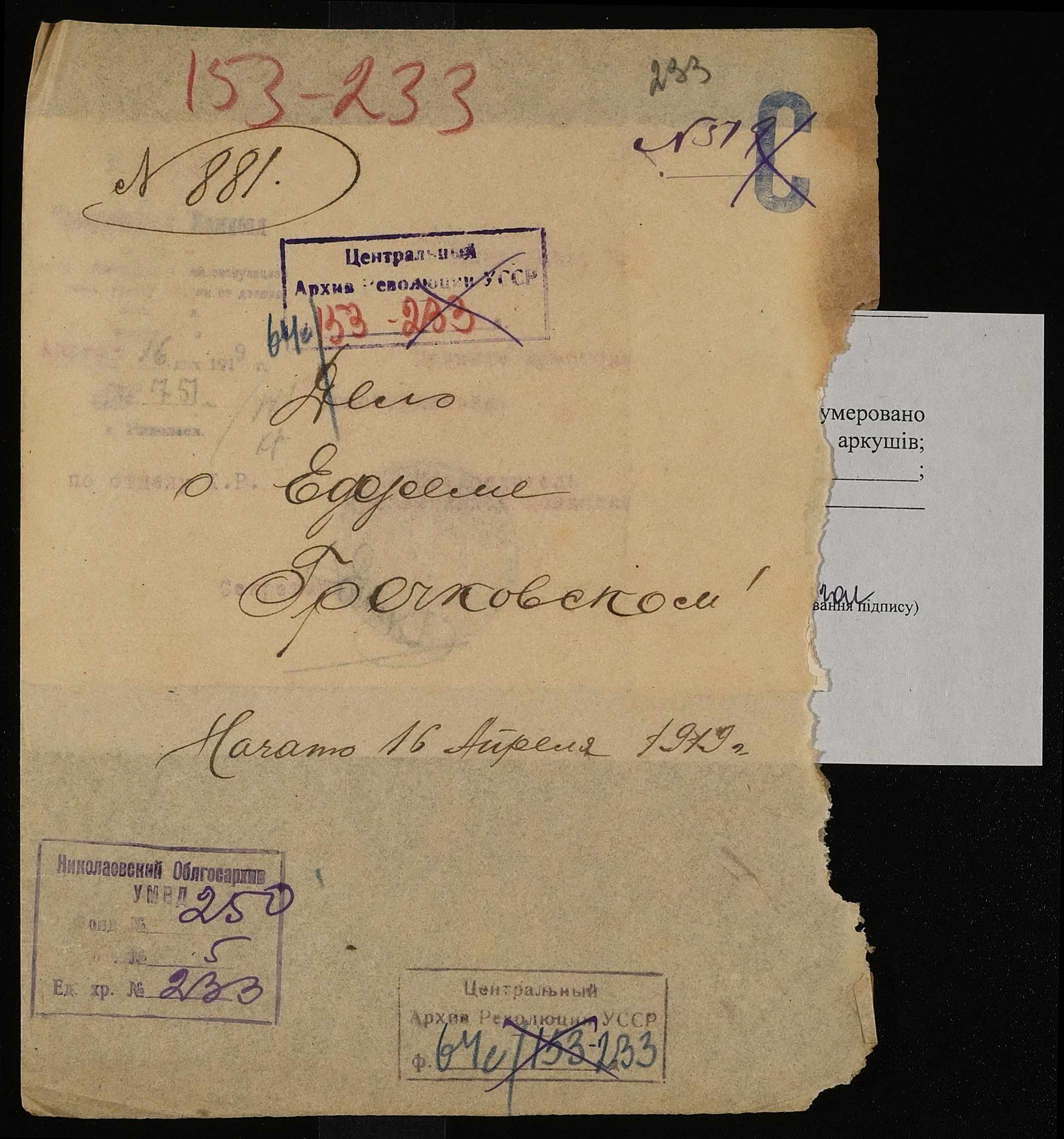 • • • • Справа № 233 Гречковський Єфрем (Гречковский Ефрем)