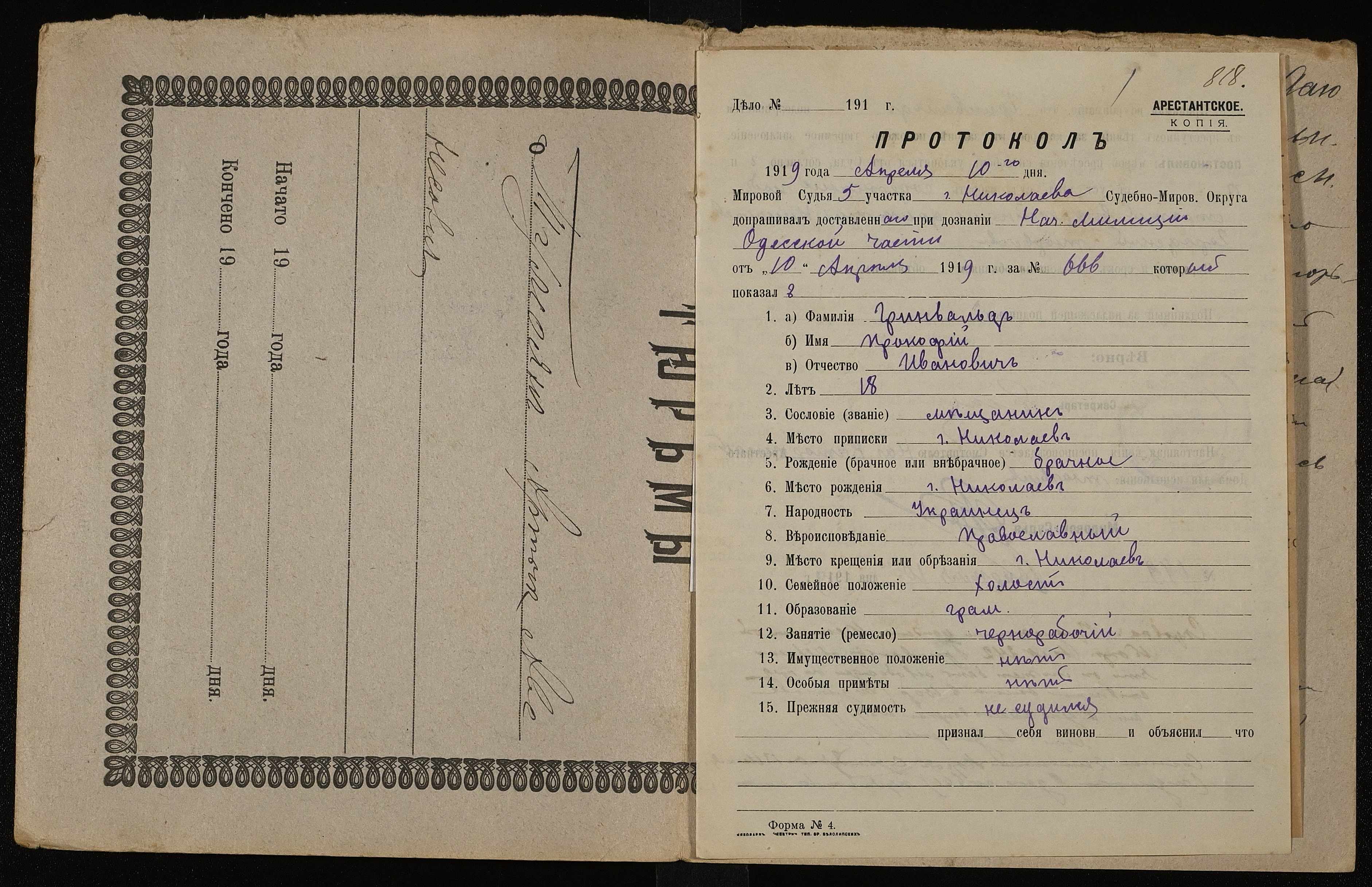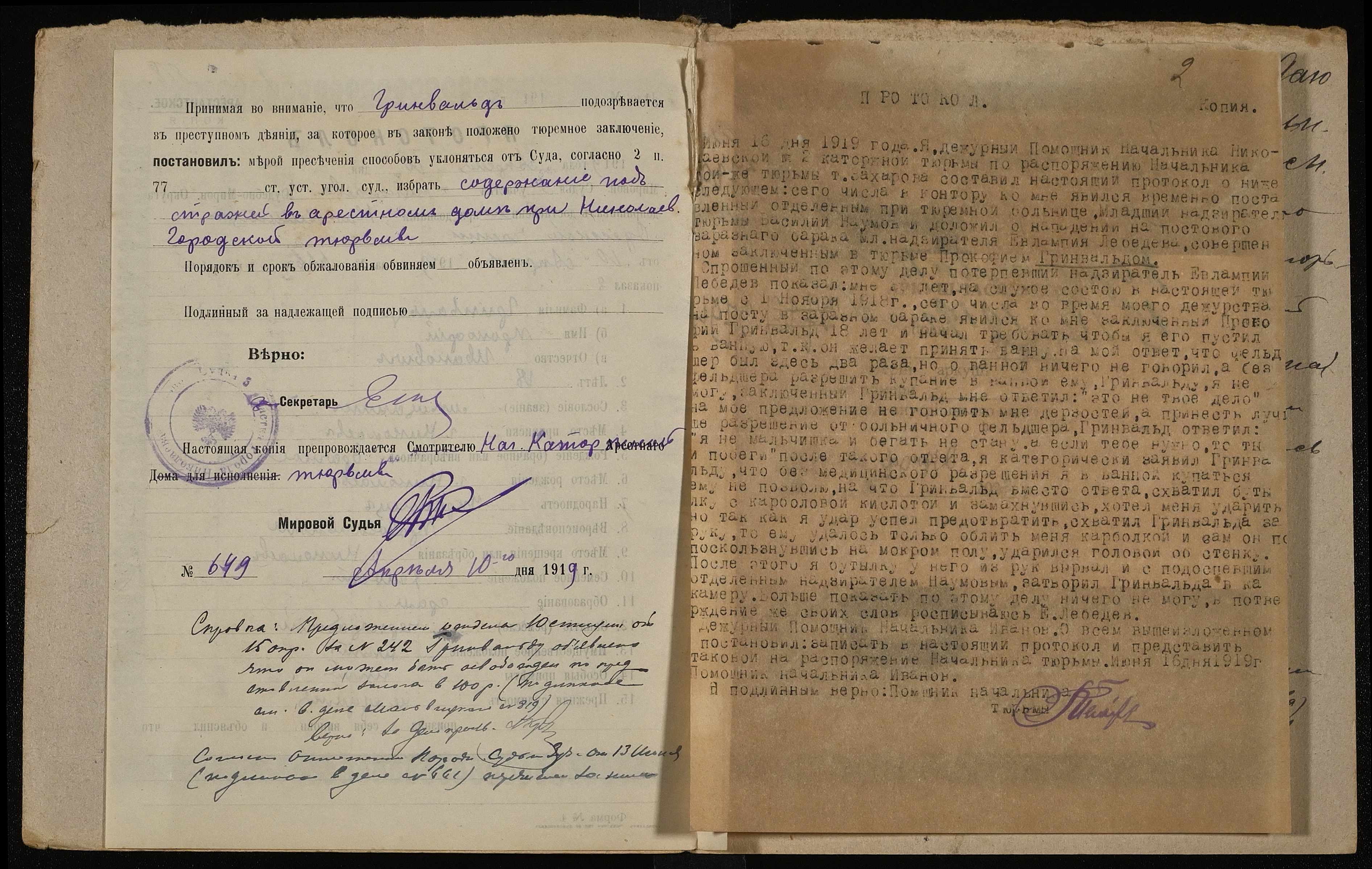 • • • • Справа № 238 Грінвальд Прокопій Іванович (Гринвальд Проофий Иванович)