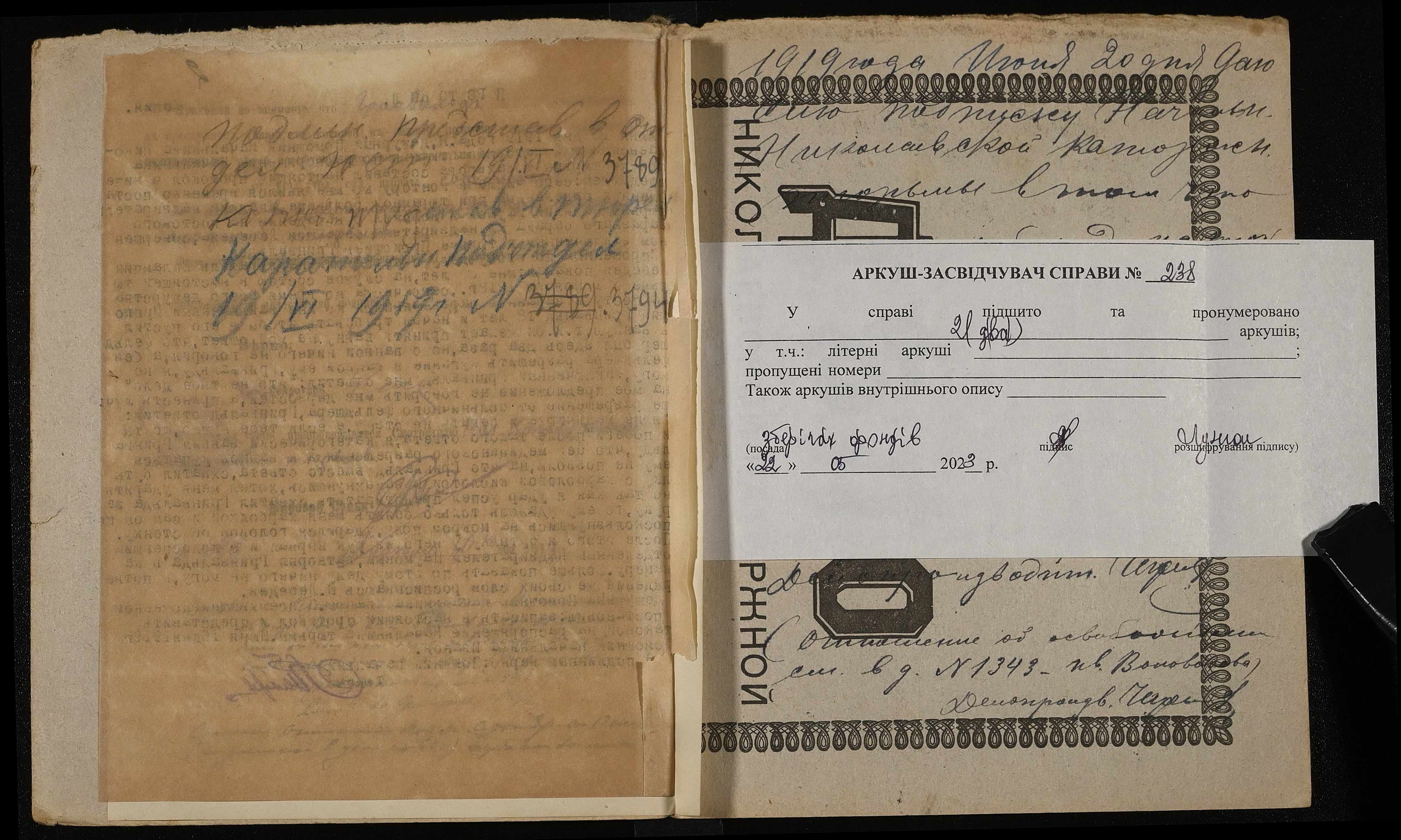 Фонд 250 / Опис 5 / Справа 0238