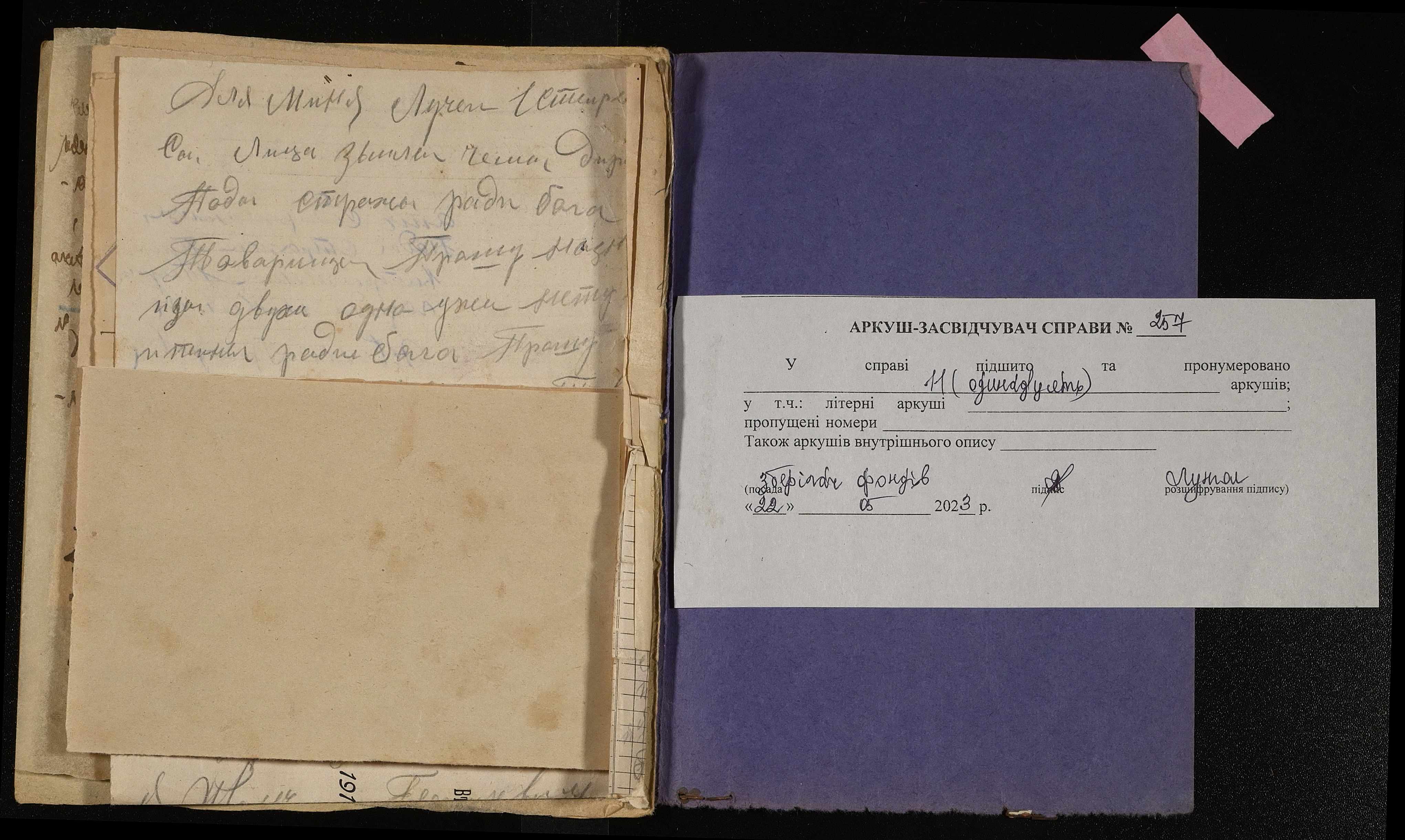 Фонд 250 / Опис 5 / Справа 0257