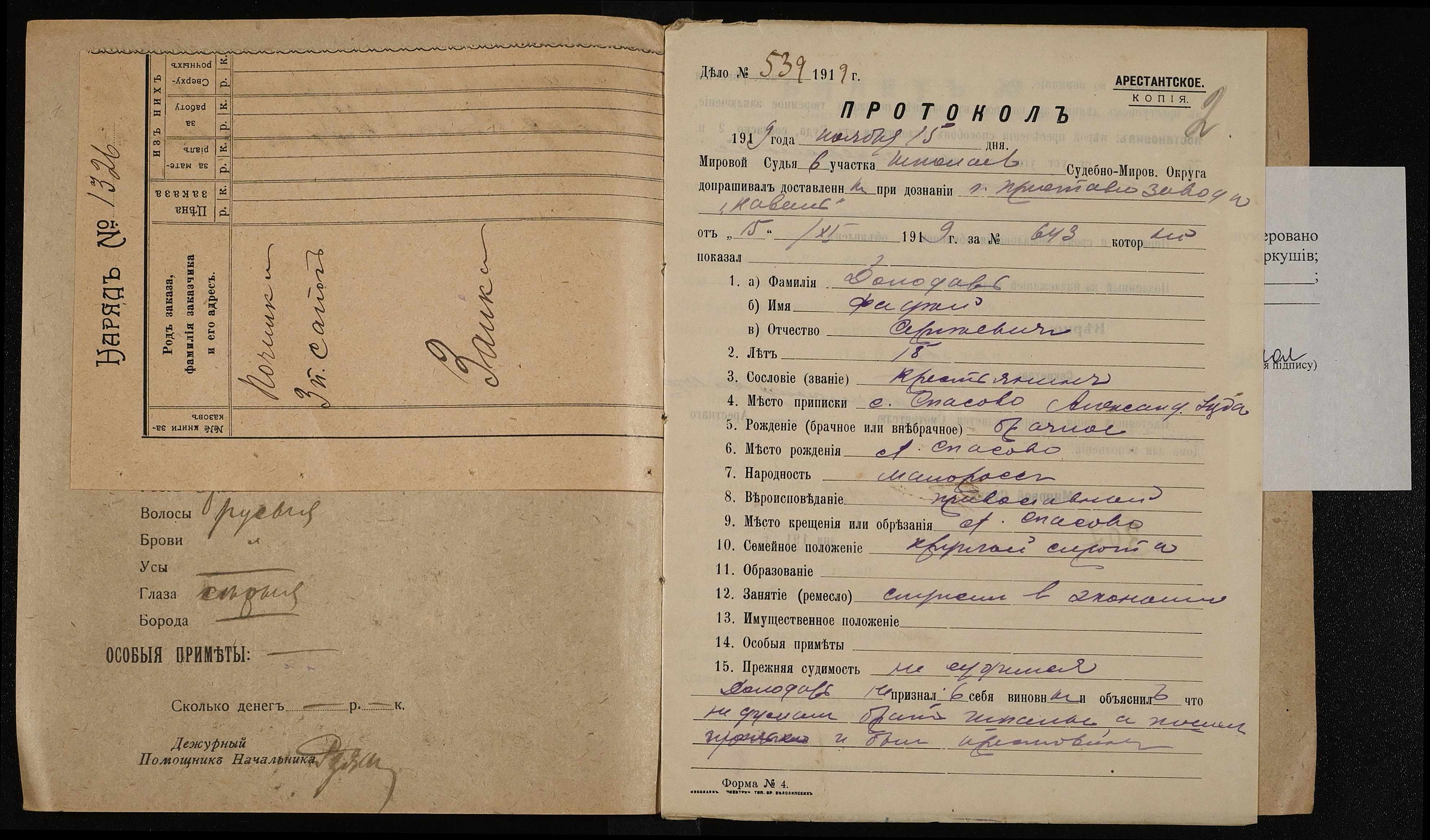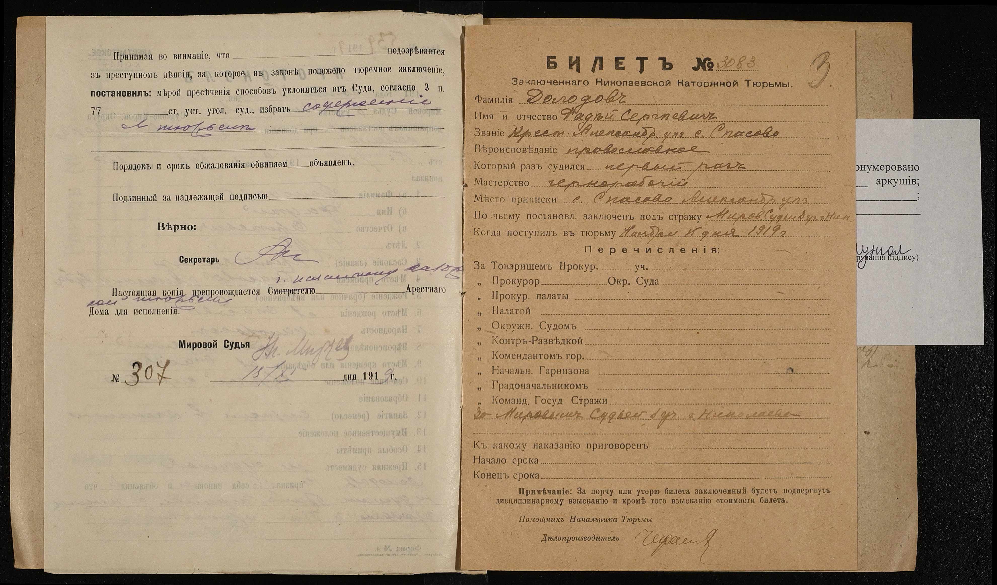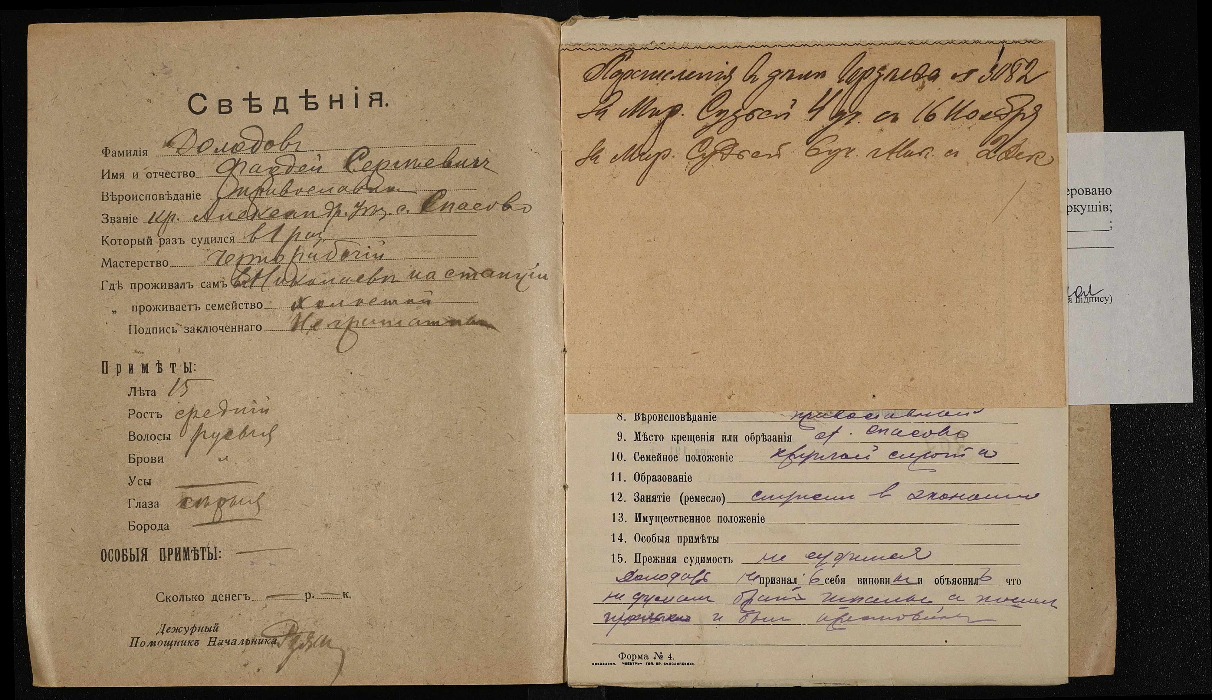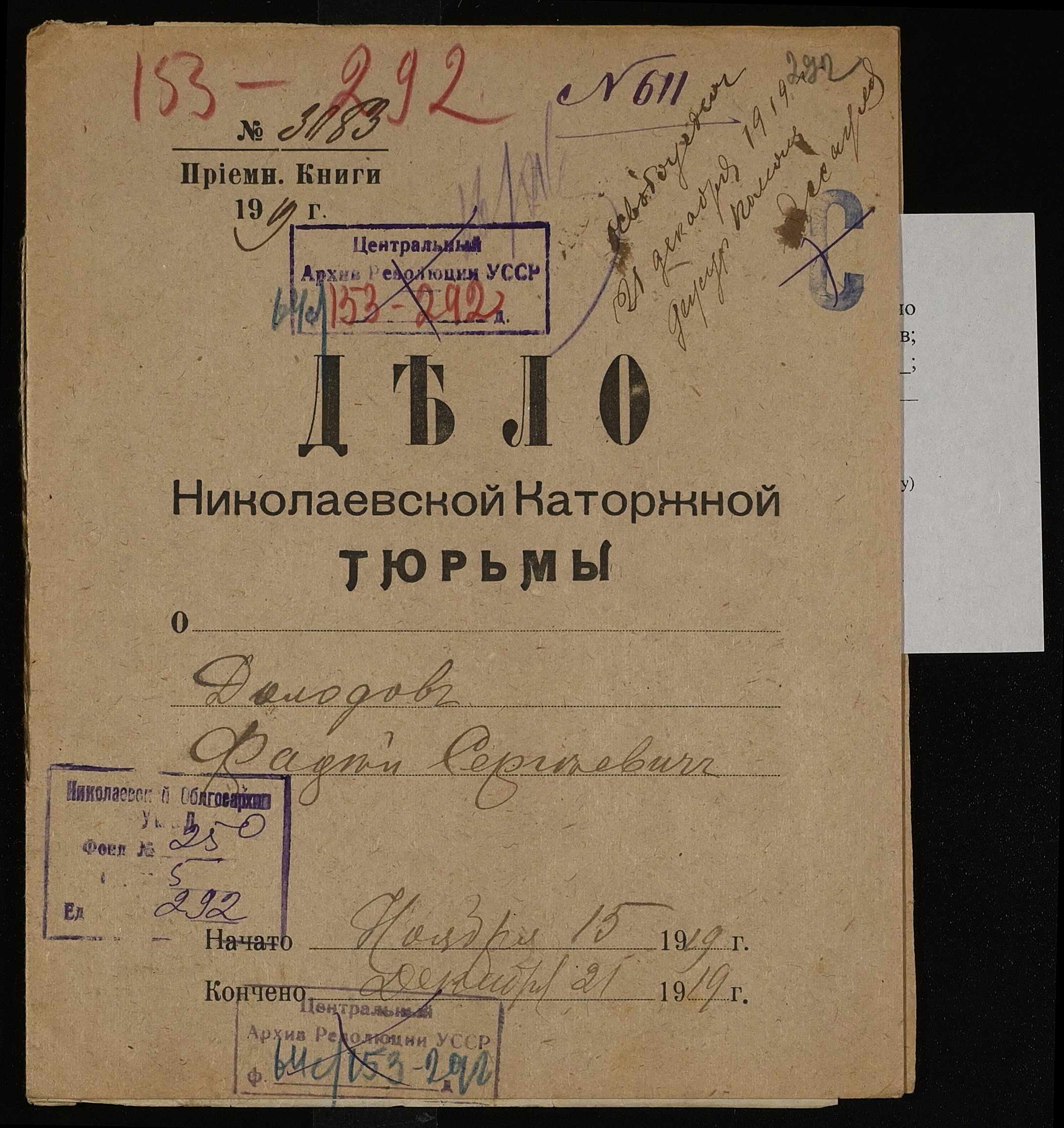 • • • • Справа № 292 Долодов Фадей Сергійович (Долодов Фадей Сергеевич)
