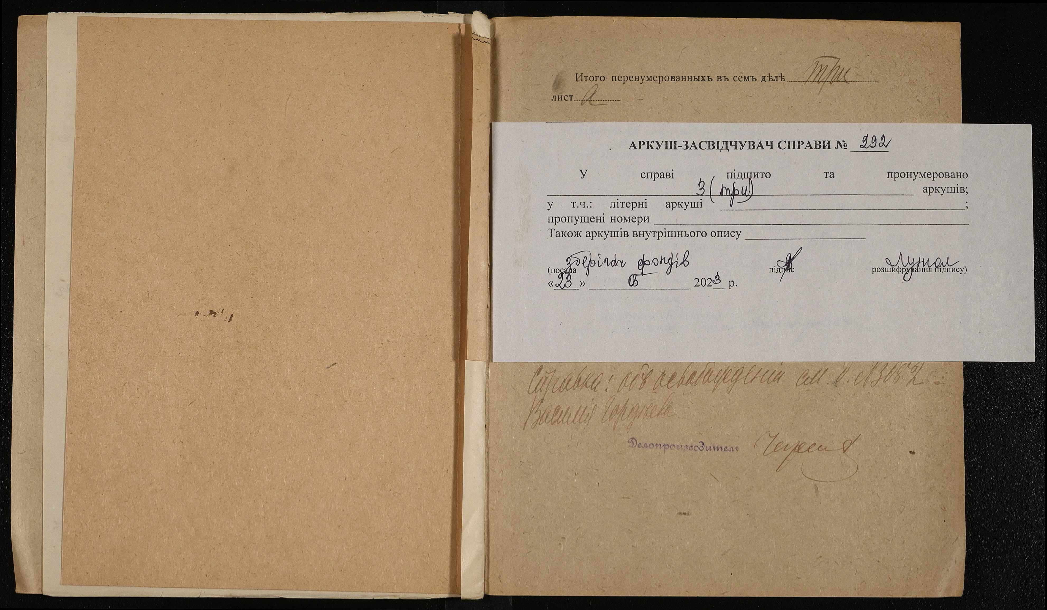 Фонд 250 / Опис 5 / Справа 0292