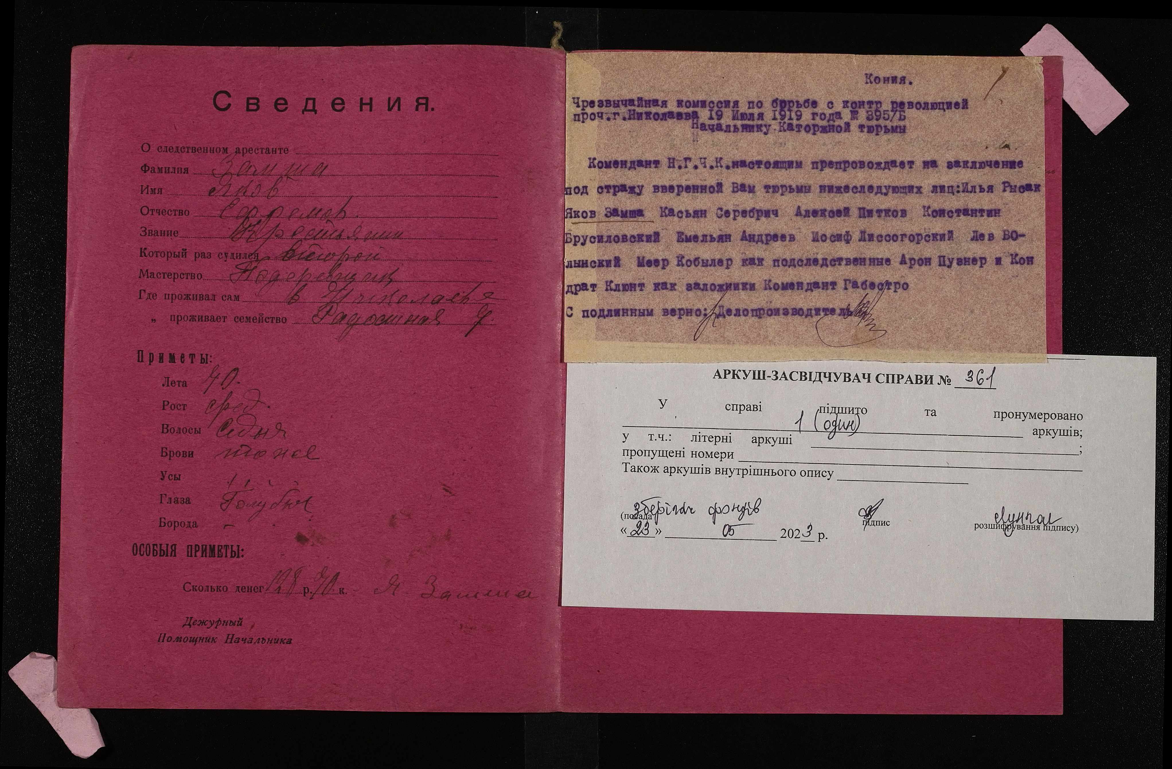 • • • • Справа № 361 Замша Яків Єфремович (Замша Яков Ефремович)