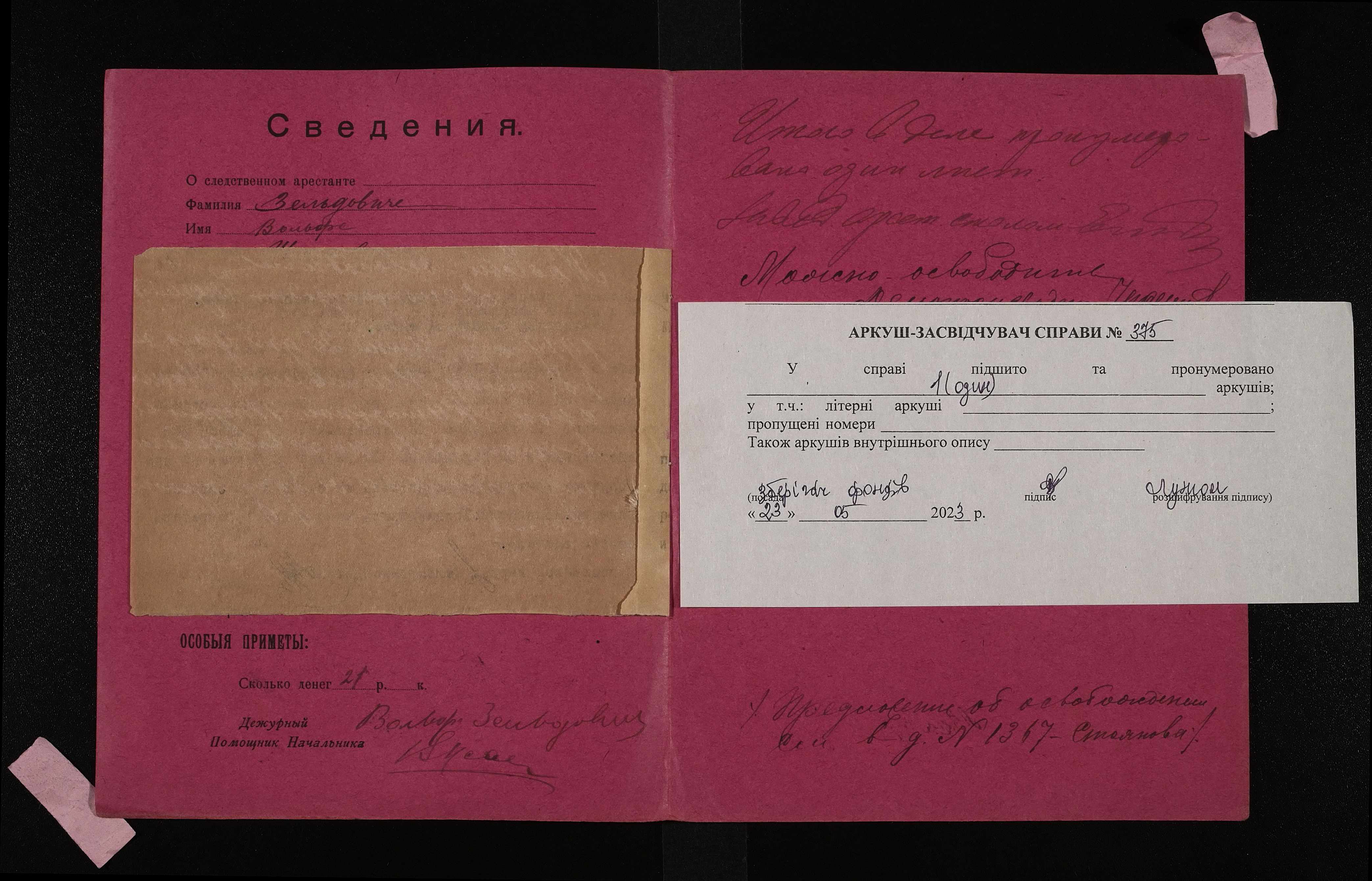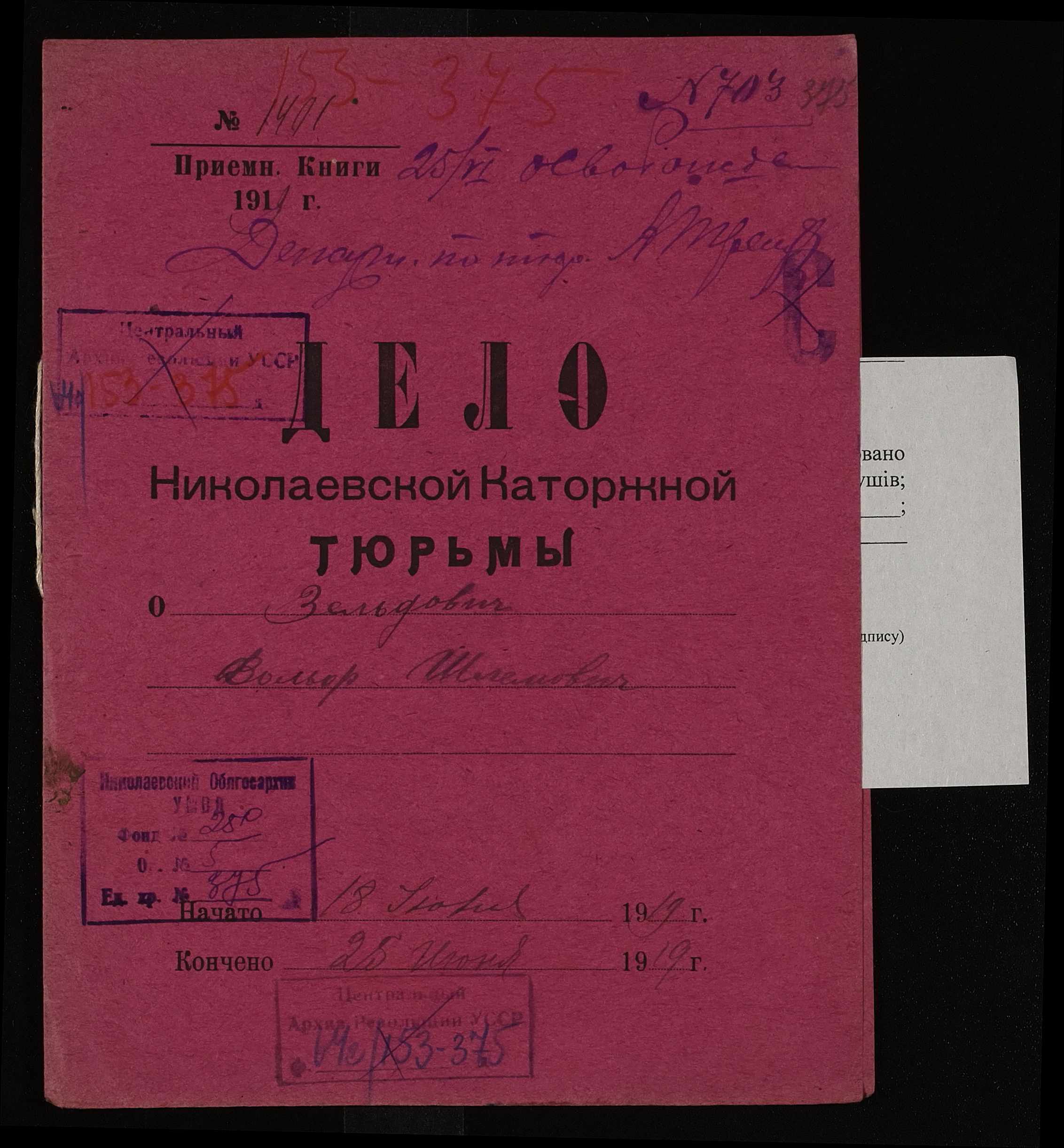 • • • • Справа № 375 Зельдович Вольф Шлемович (Зельдович Вольф Шлемович)