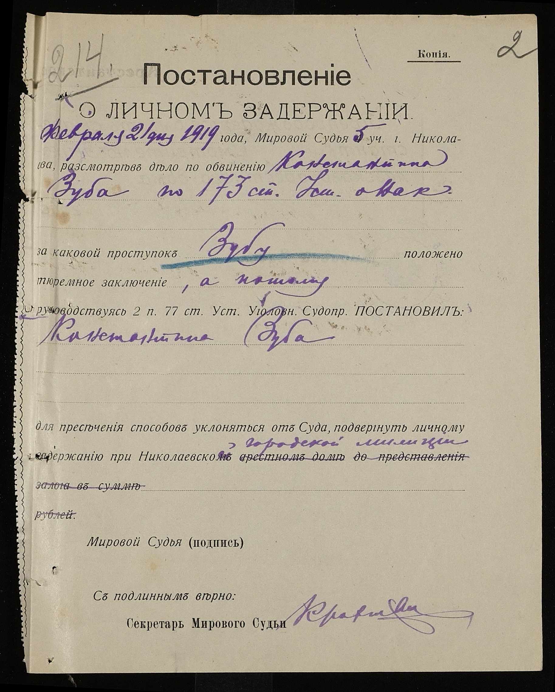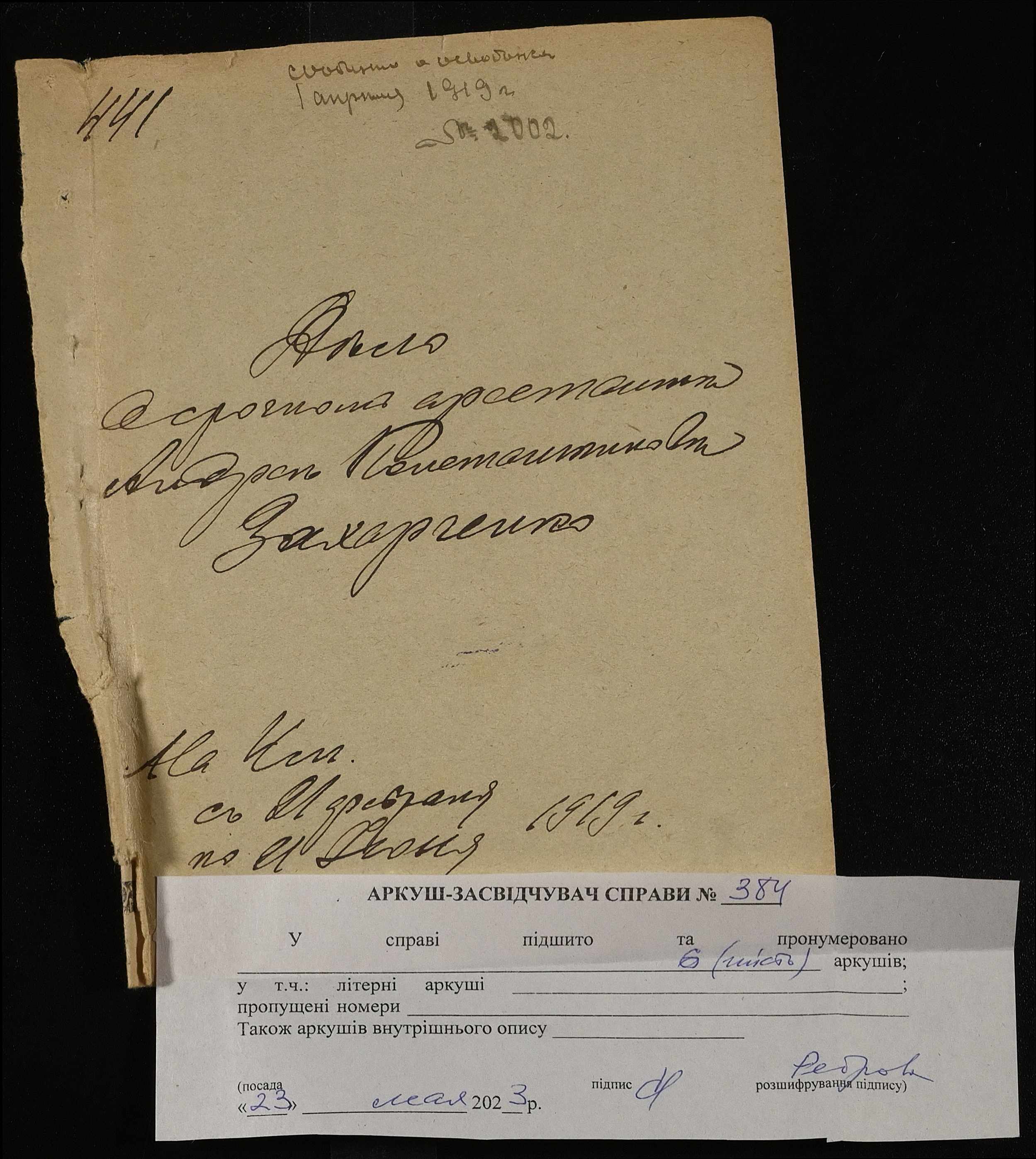 • • • • Справа № 384 Зуб Костянтин Васильович (Зуб Константин Васильевич)