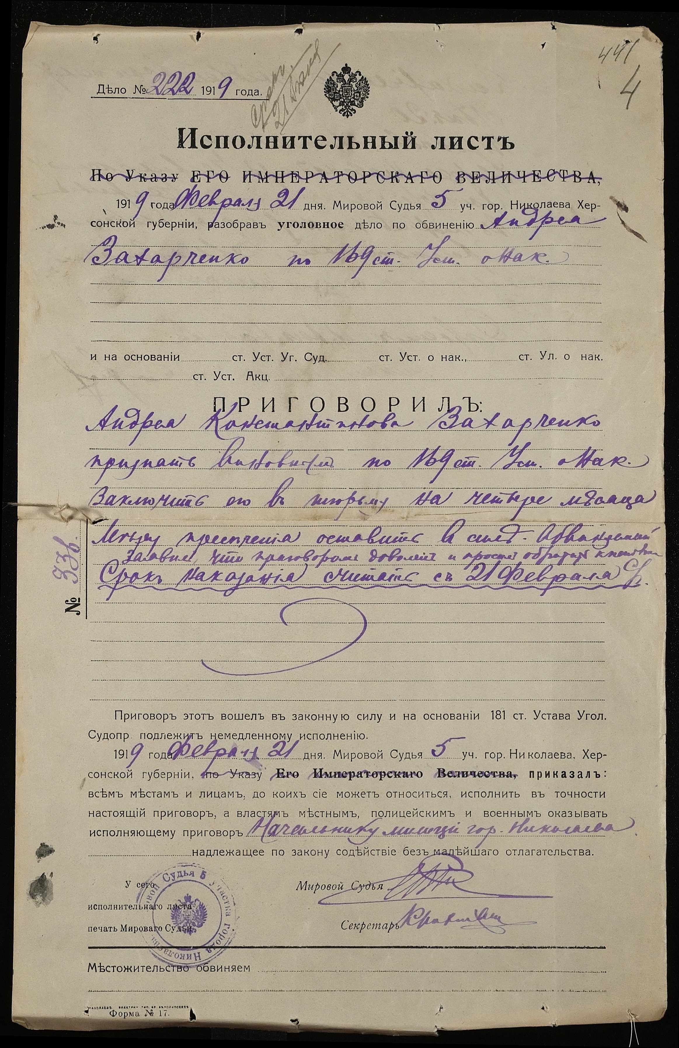 ◦ ◦ Фонд № 250 “Миколаївська каторжна тюрма № 2”