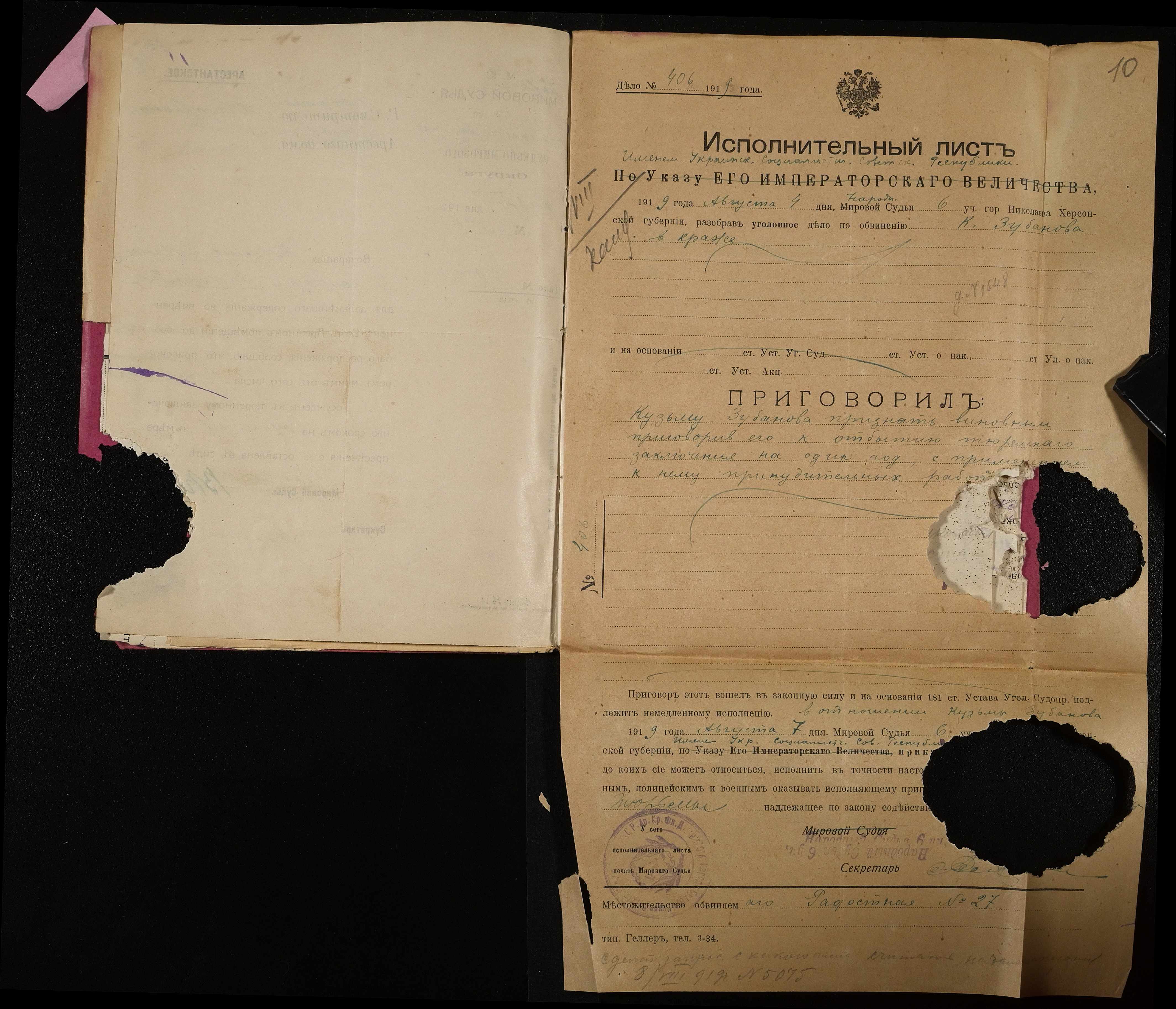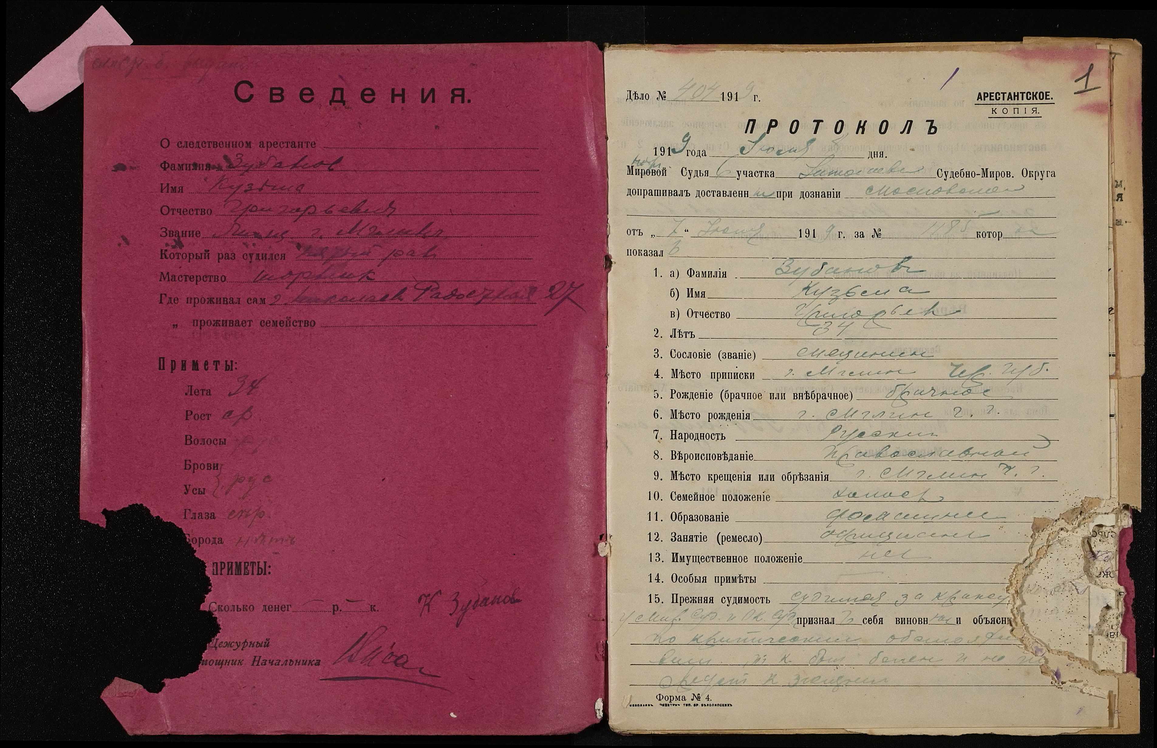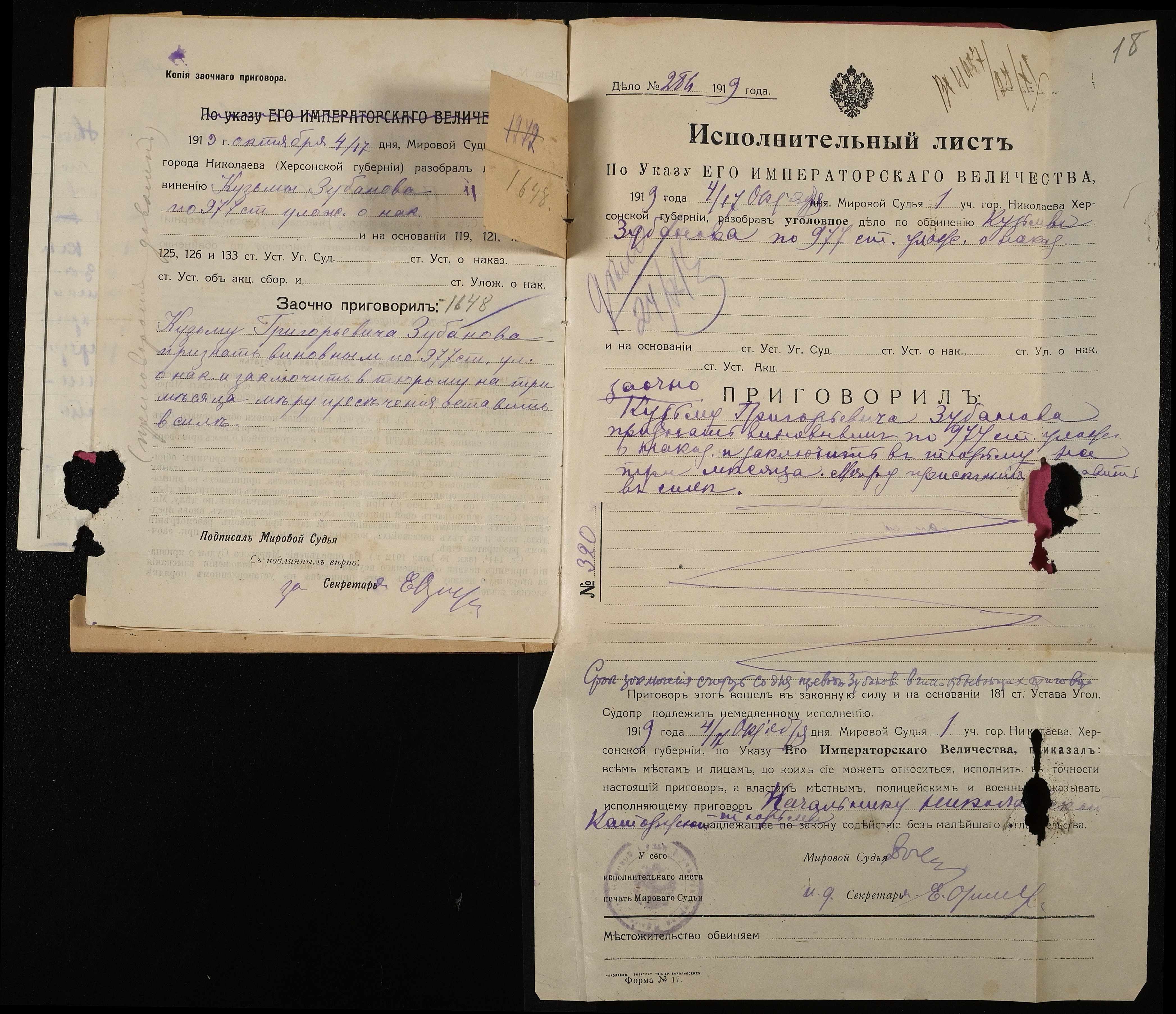• • • • Справа № 385 Зубанов Кузьма Григорович (Зубанов Кузьма Григорьевич)