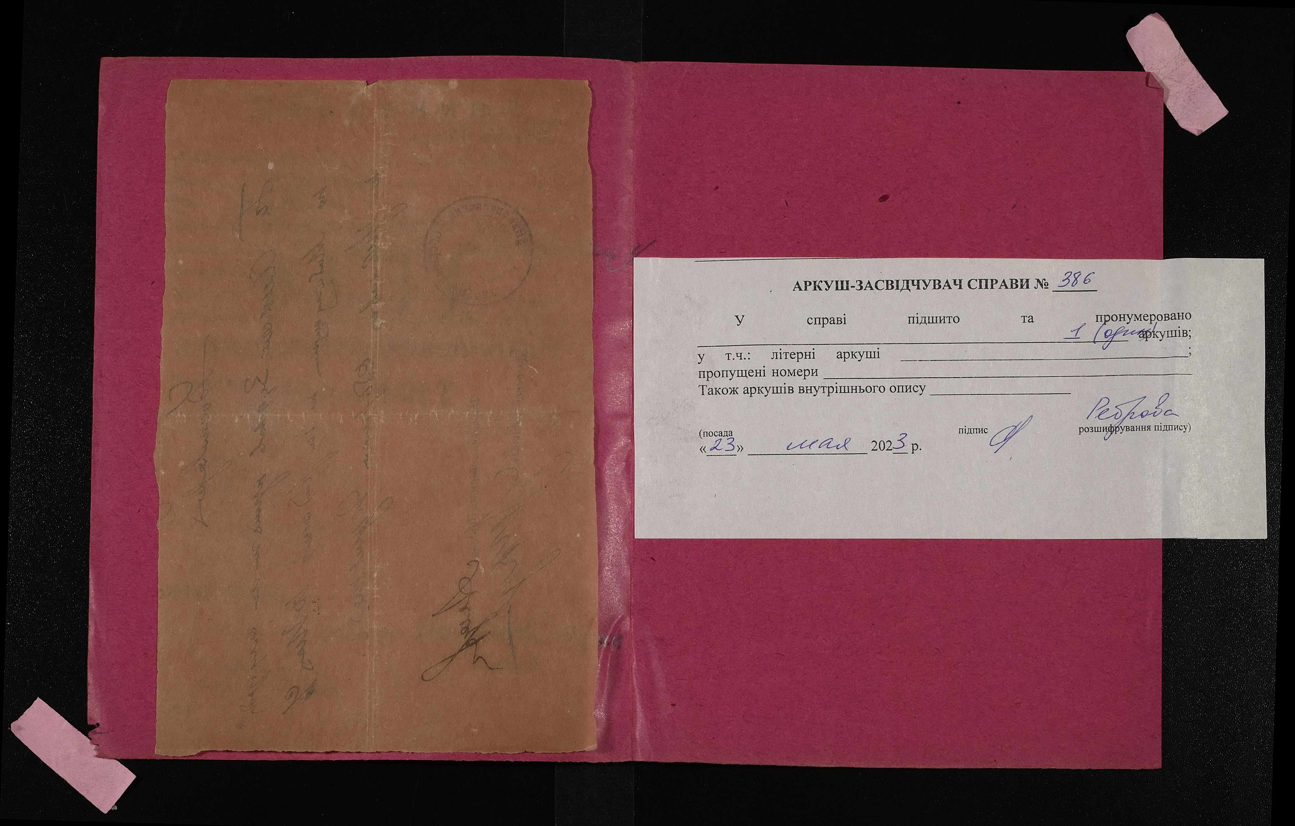 Фонд 250 / Опис 5 / Справа 0386