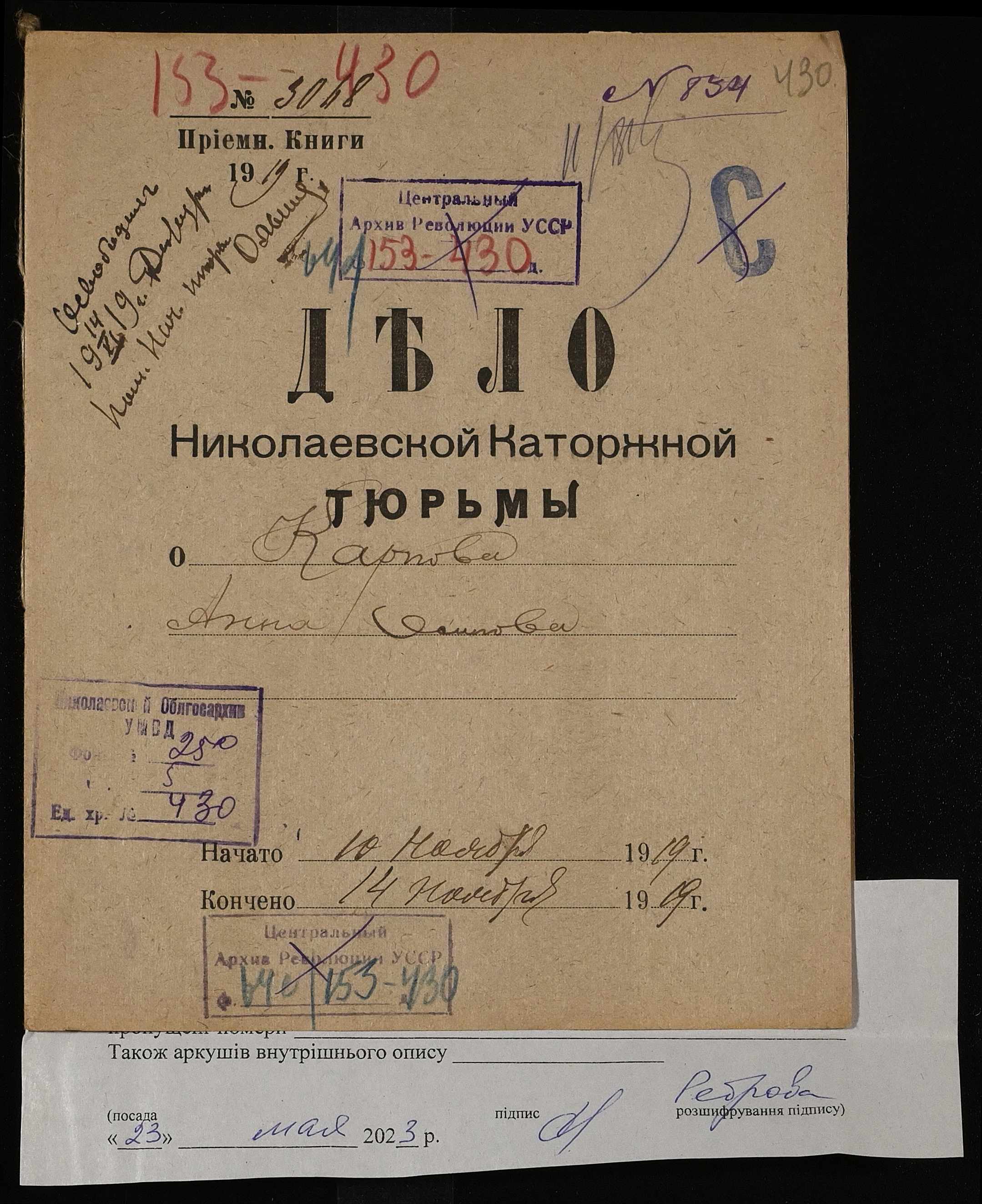 ◦ ◦ Фонд № 250 “Миколаївська каторжна тюрма № 2”