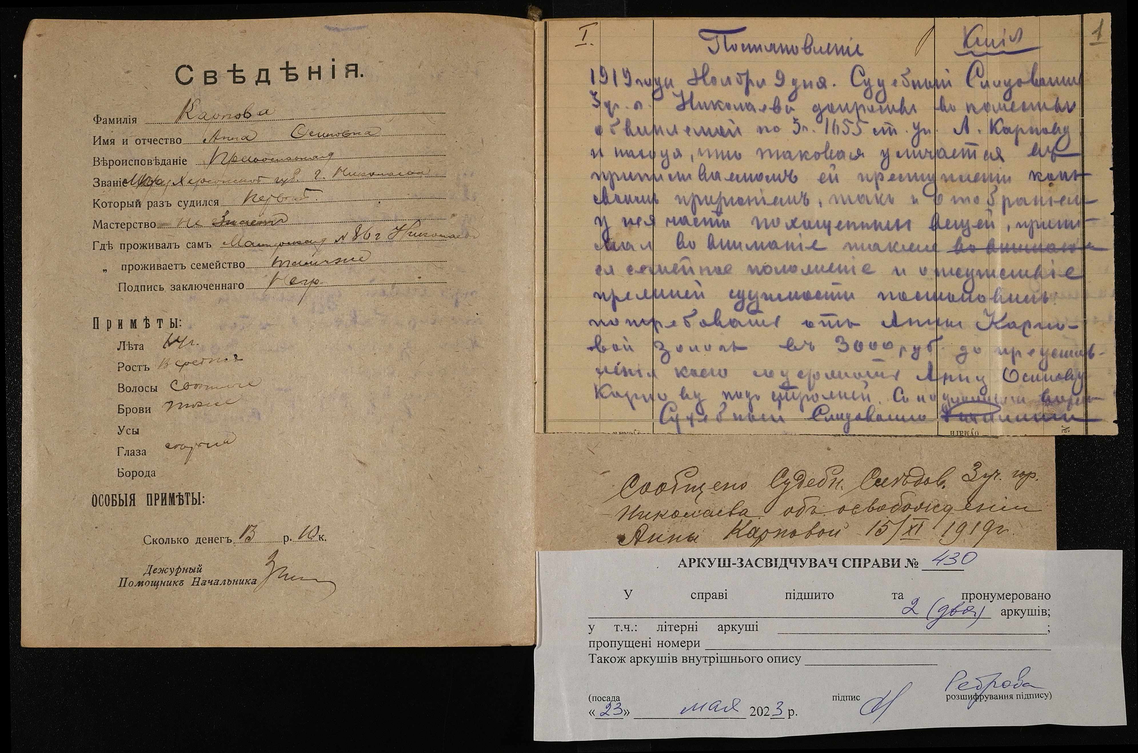 • • • • Справа № 430 Карпова Ганна Осипівна (Карпова Анна Осиповна)