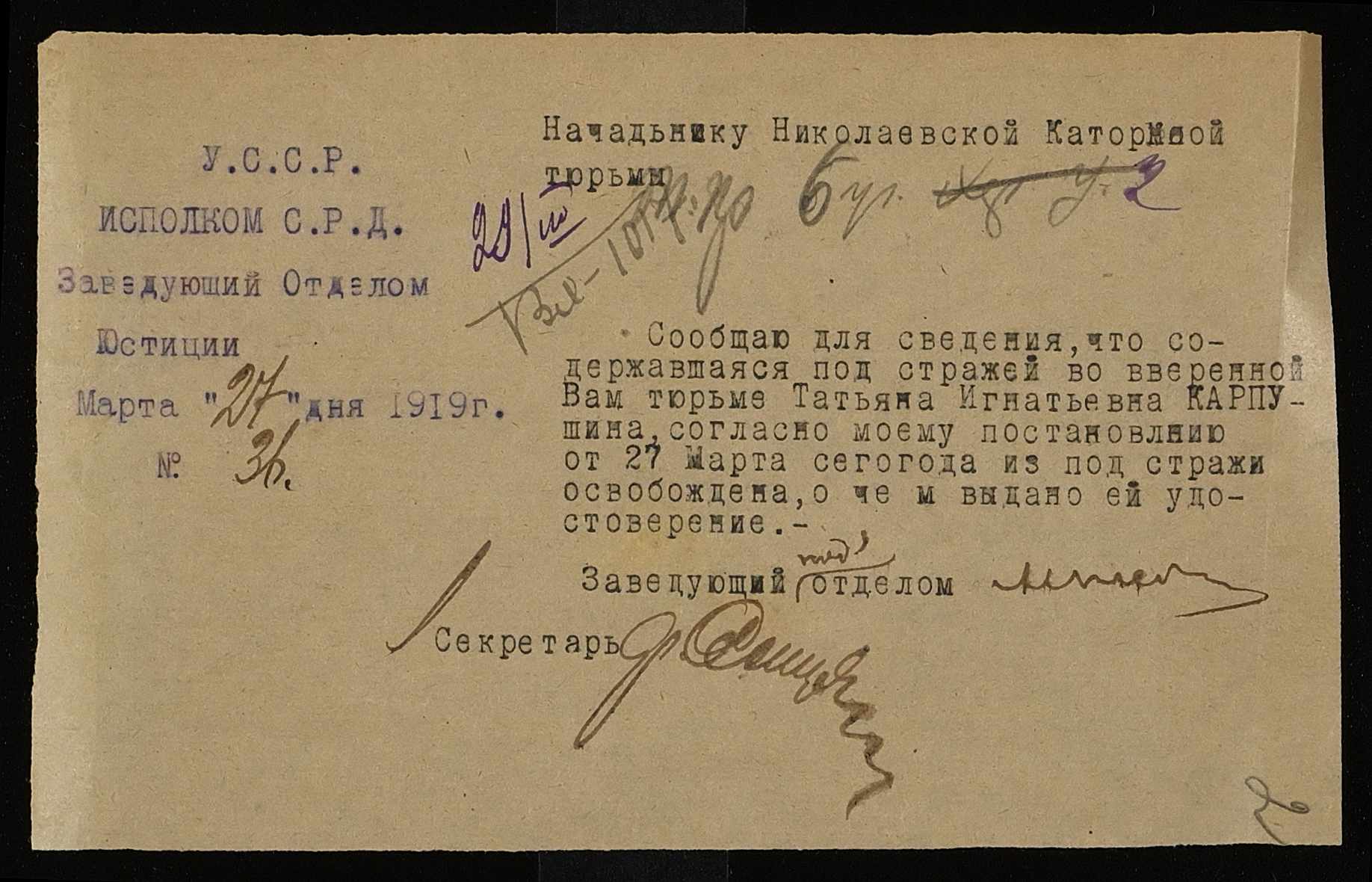 • • • • Справа № 432 Карпушина Тетяна Ігнатіївна (Карпушина Татьяна Игнатьевна)