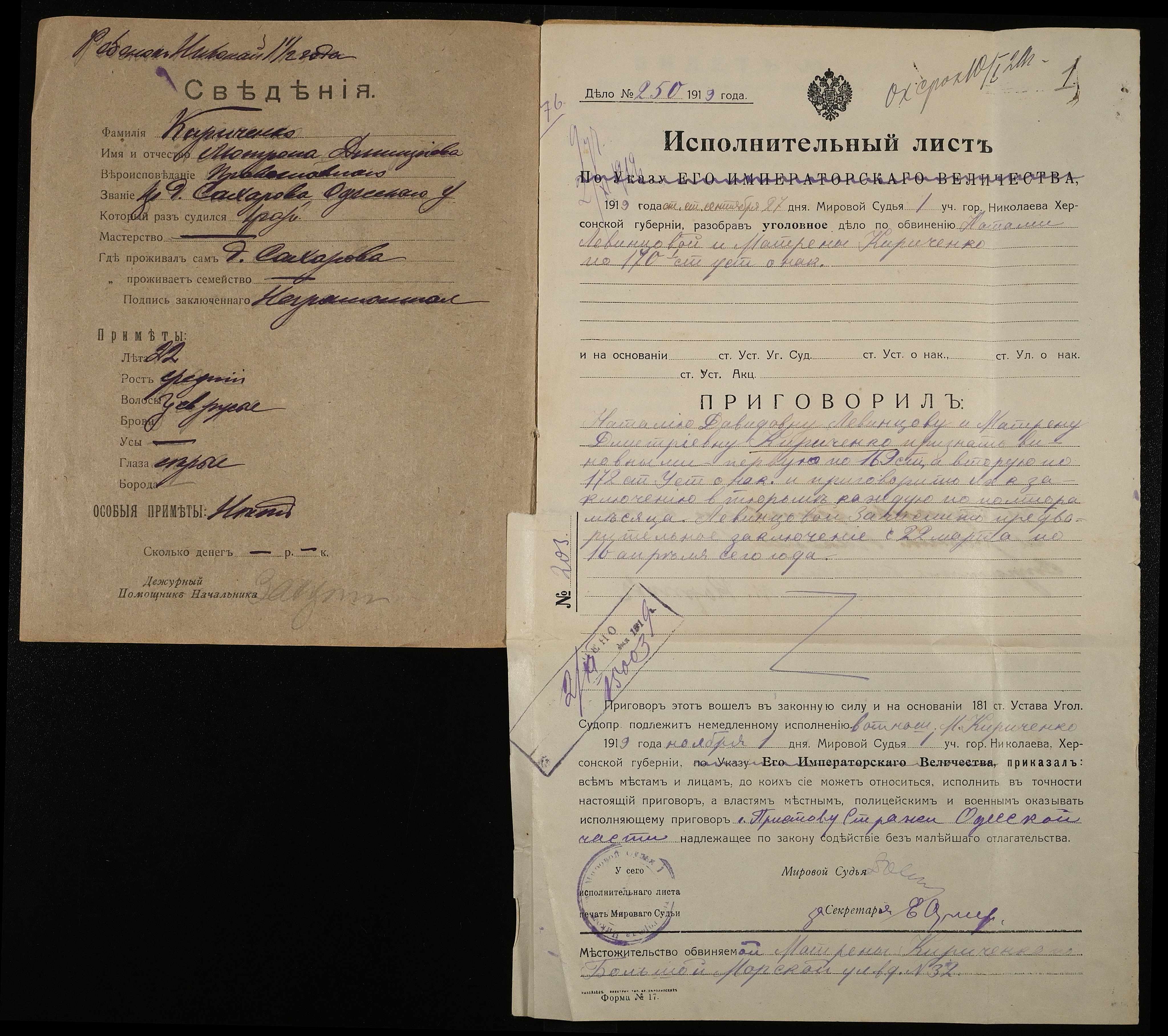 ◦ ◦ Фонд № 250 “Миколаївська каторжна тюрма № 2”