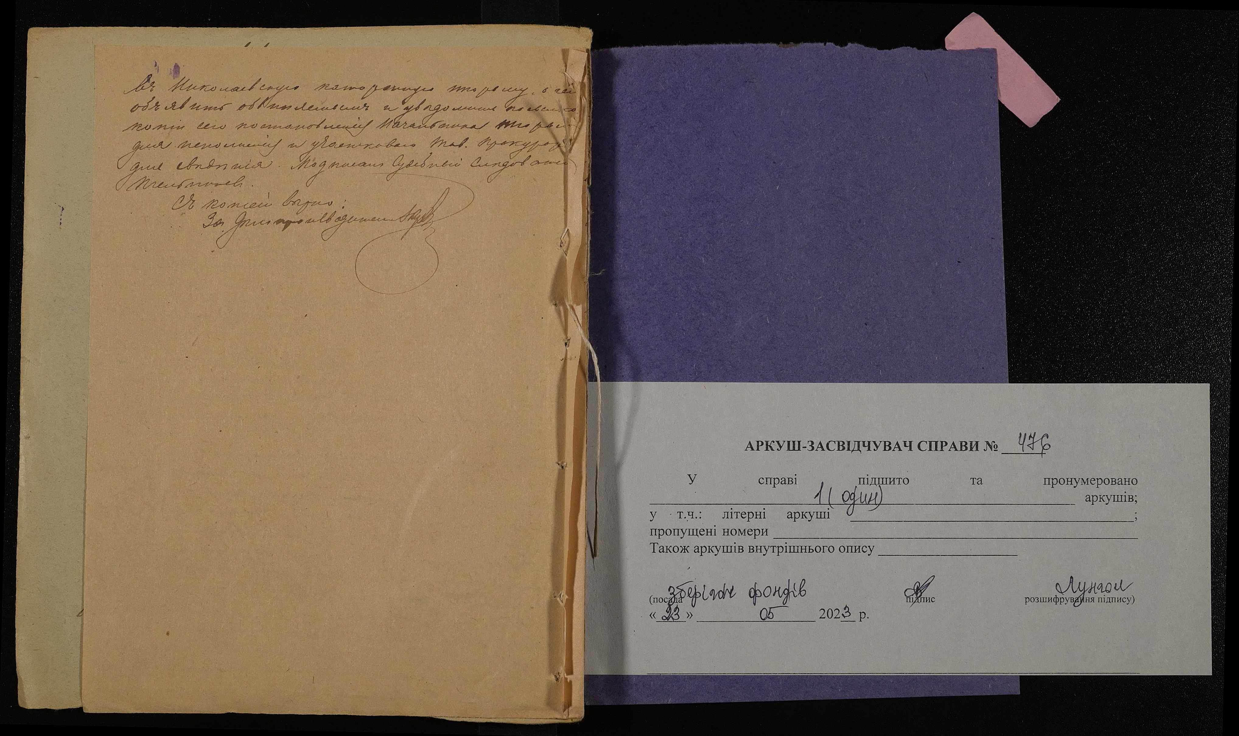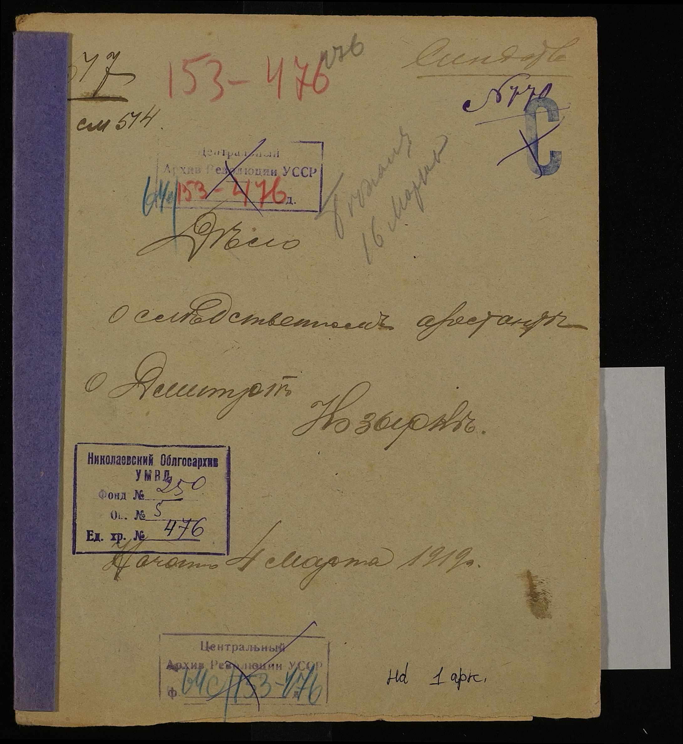 Фонд 250 / Опис 5 / Справа 0476