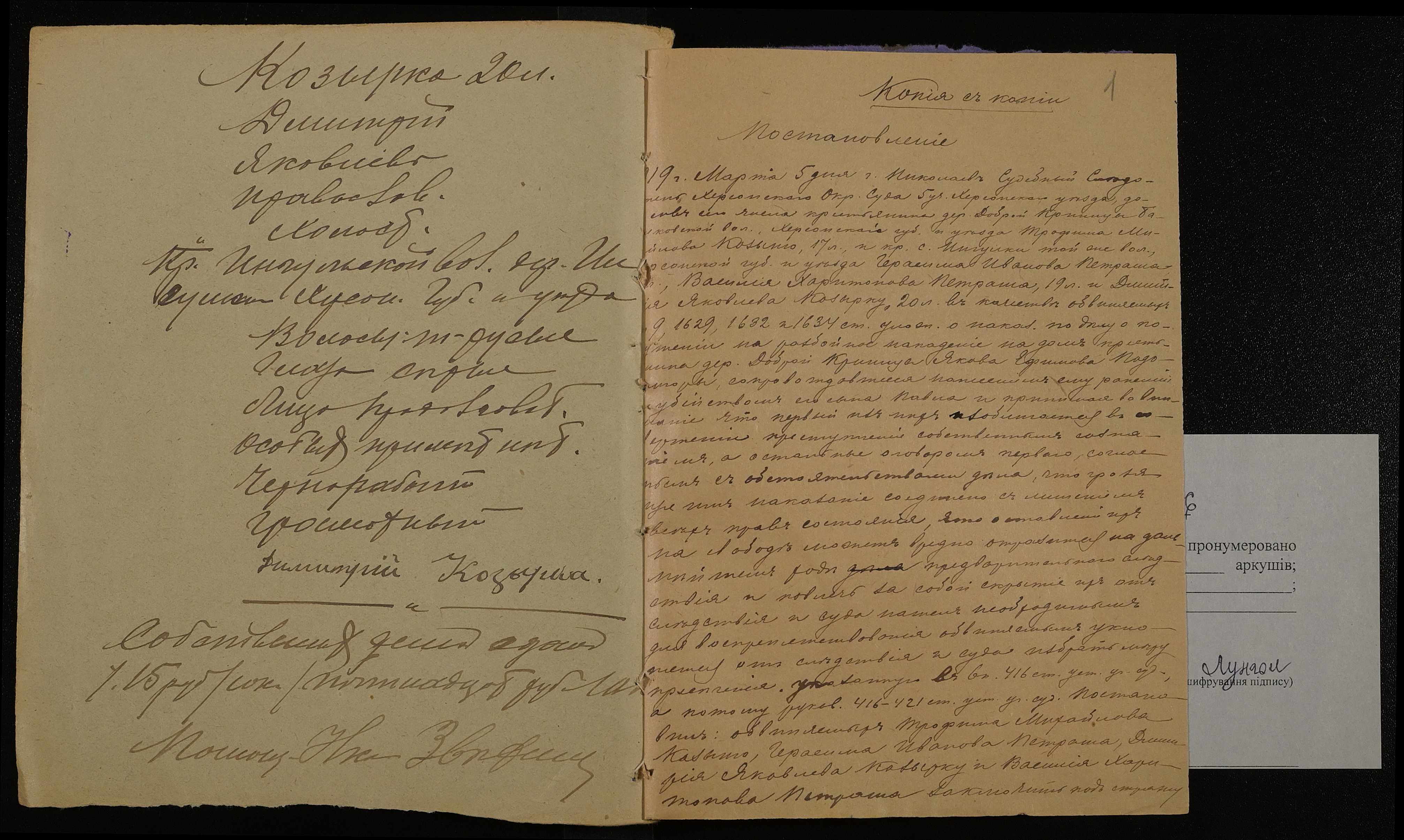 • • • • Справа № 476 Козирка Дмитро Якович (Козырка Дмитрий Якович)