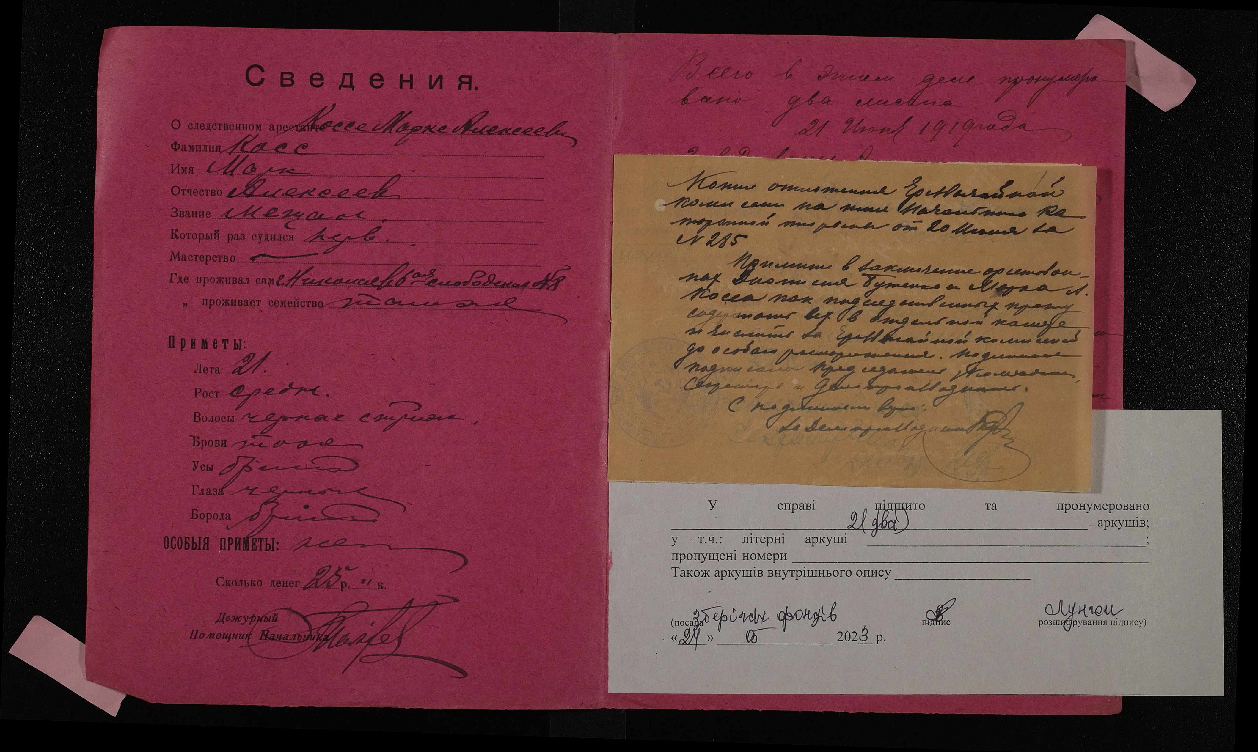 • • • • Справа № 501 Косса Марк Олексійович (Косса Марк Алексеевич)