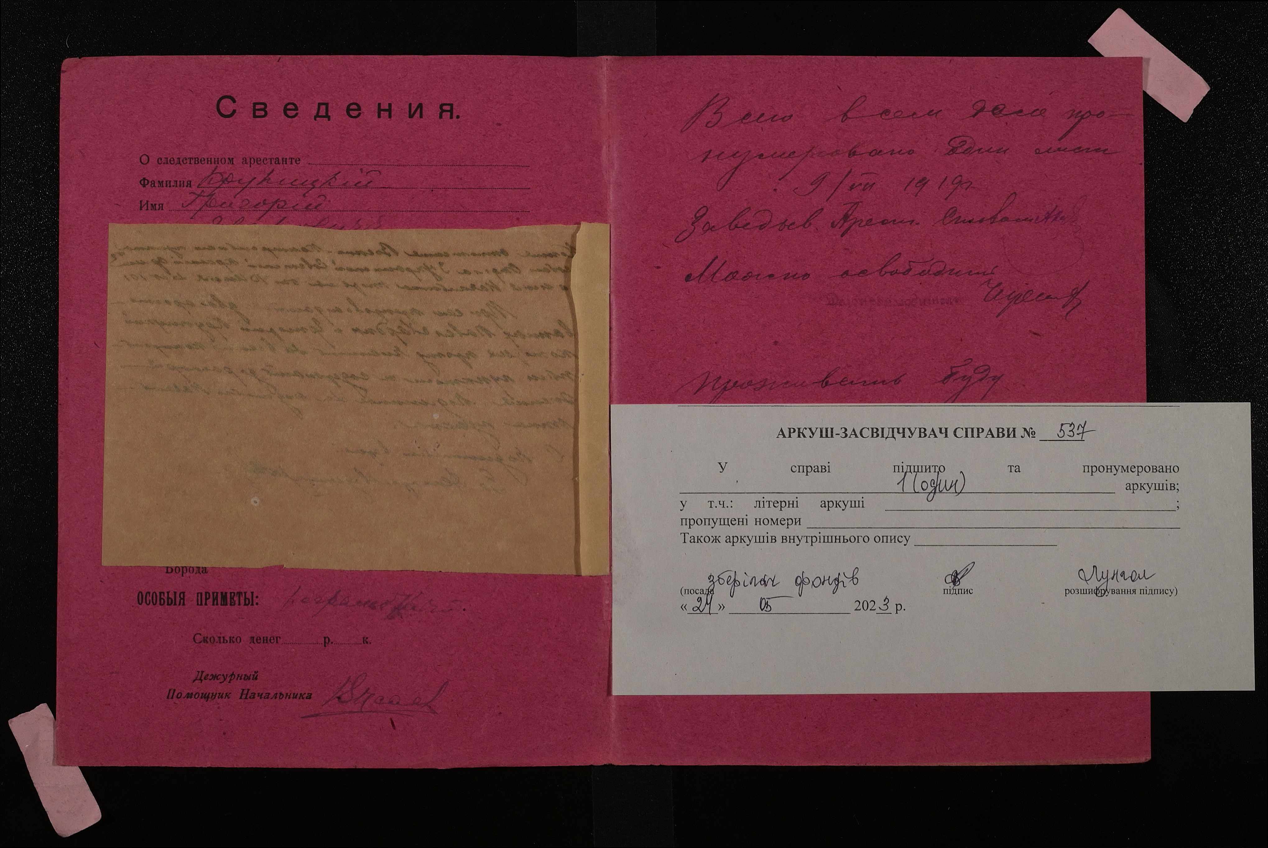 Фонд 250 / Опис 5 / Справа 0537