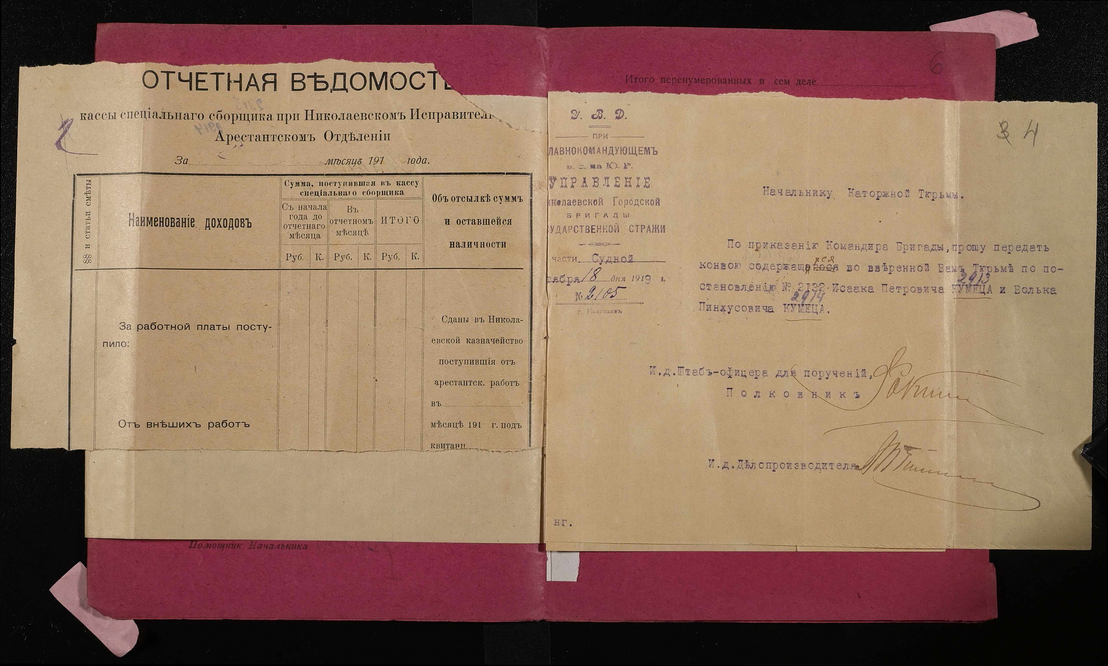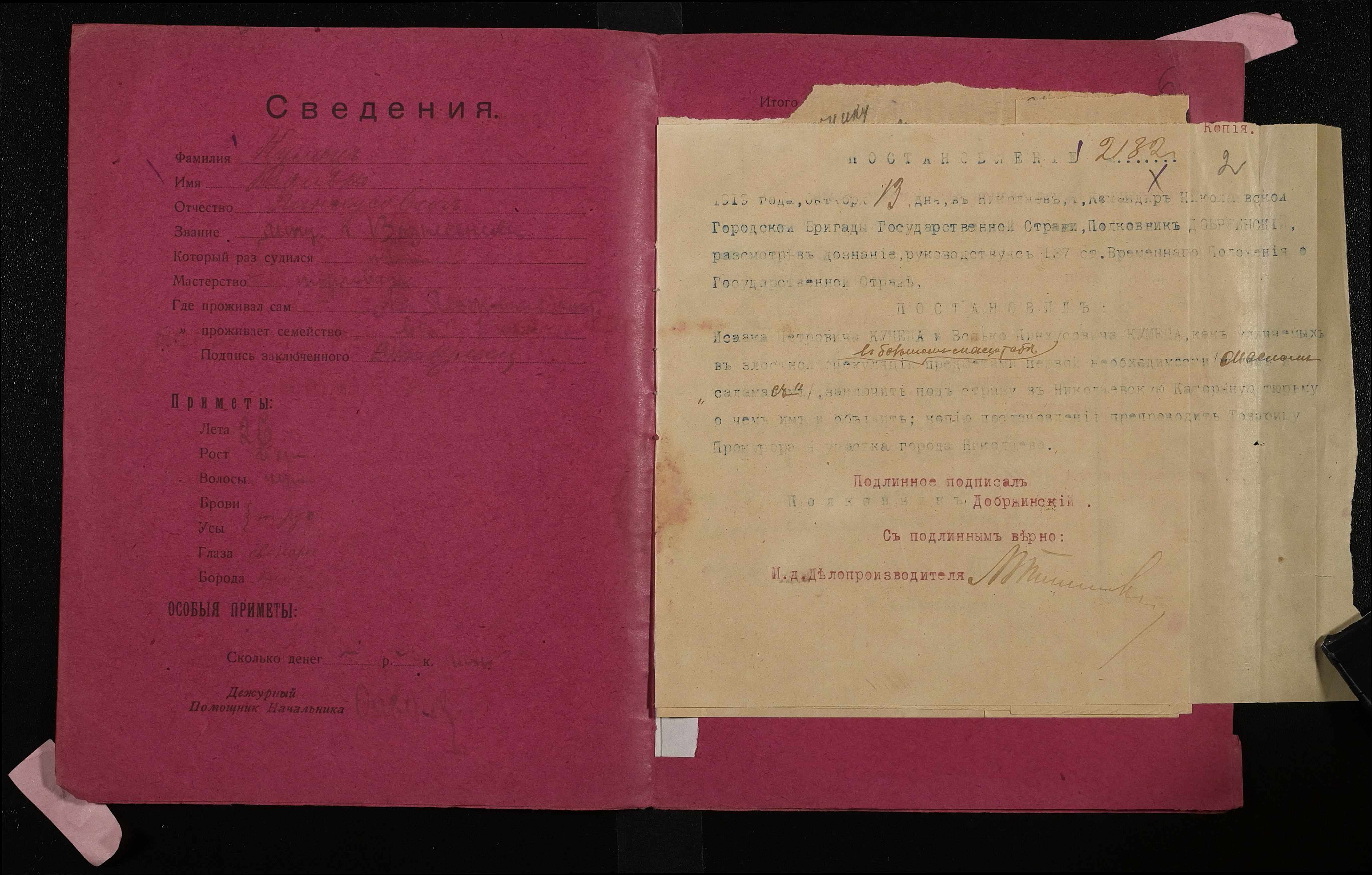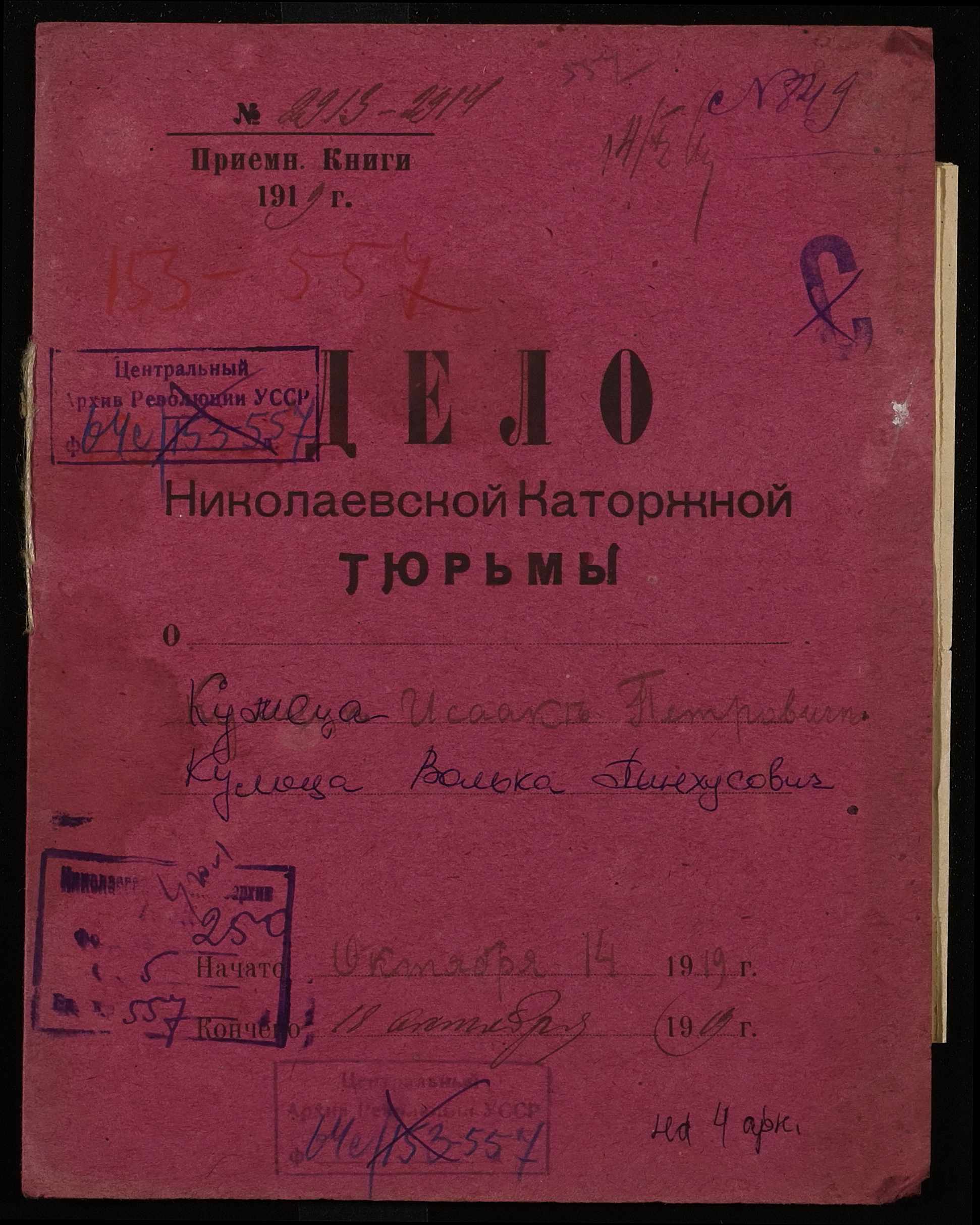 • • • • Справа № 557 Кулиця Ісаак Петрович (Кулица Исаак Петрович), Кулиця Волька Пінхусович (Кулица Волька Пинхусович)
