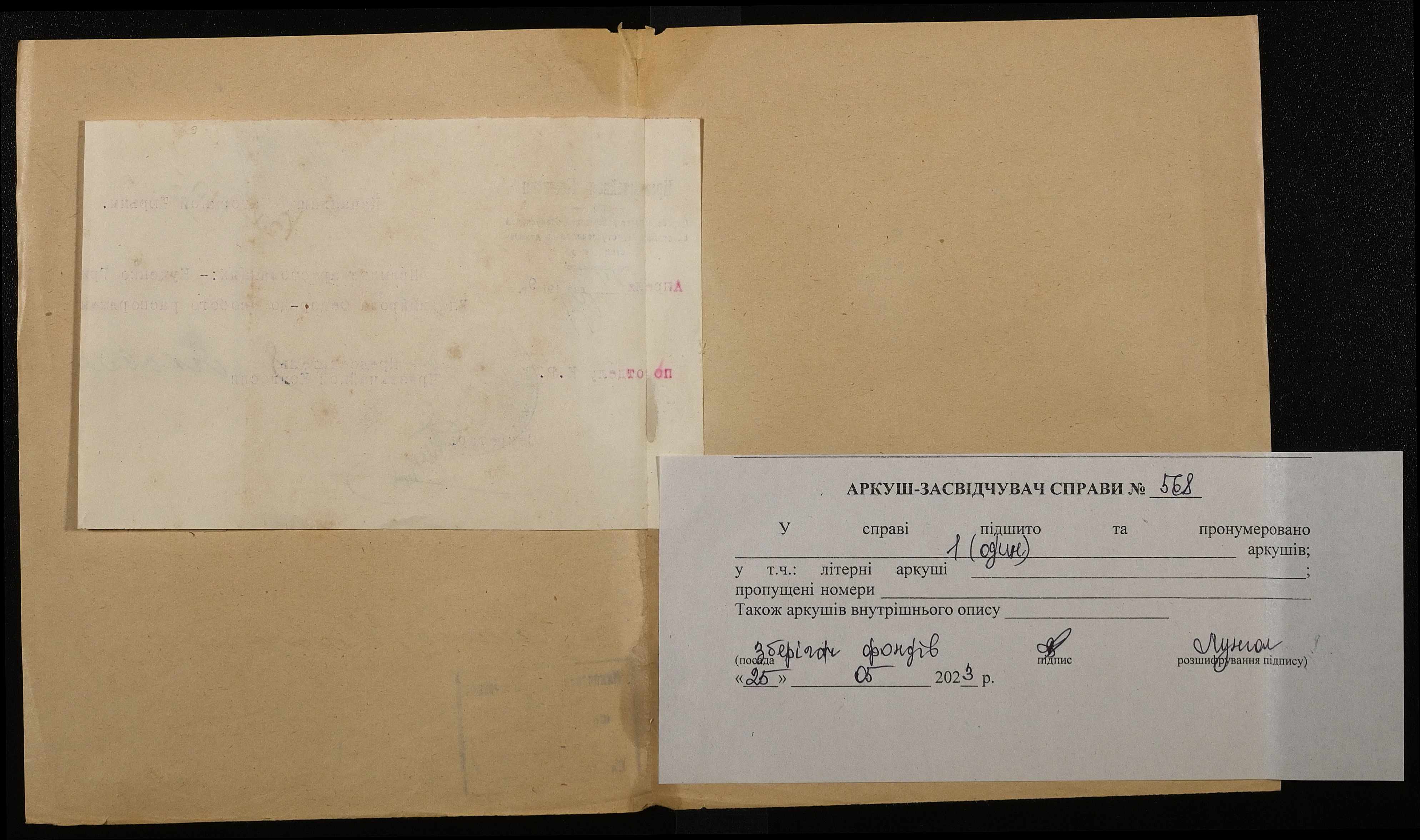 Фонд 250 / Опис 5 / Справа 0568