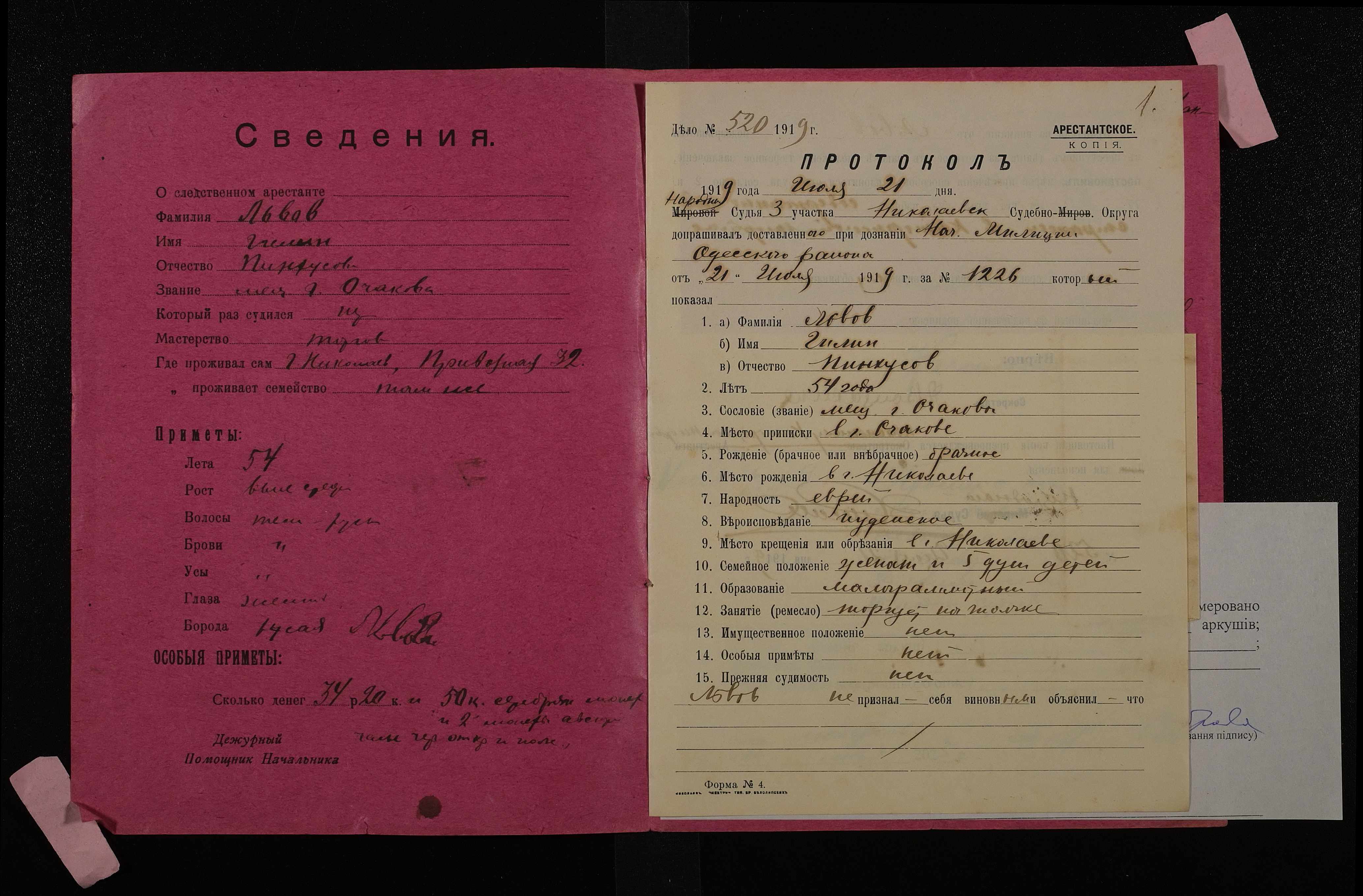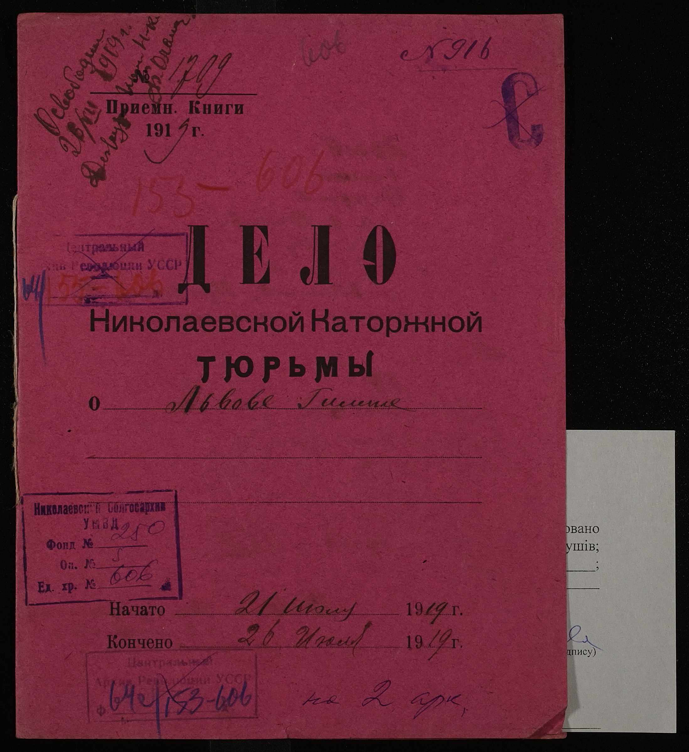 • • • • Справа № 606 Львов Гілель Пінхусович (Львов Гилель Пинхусович )