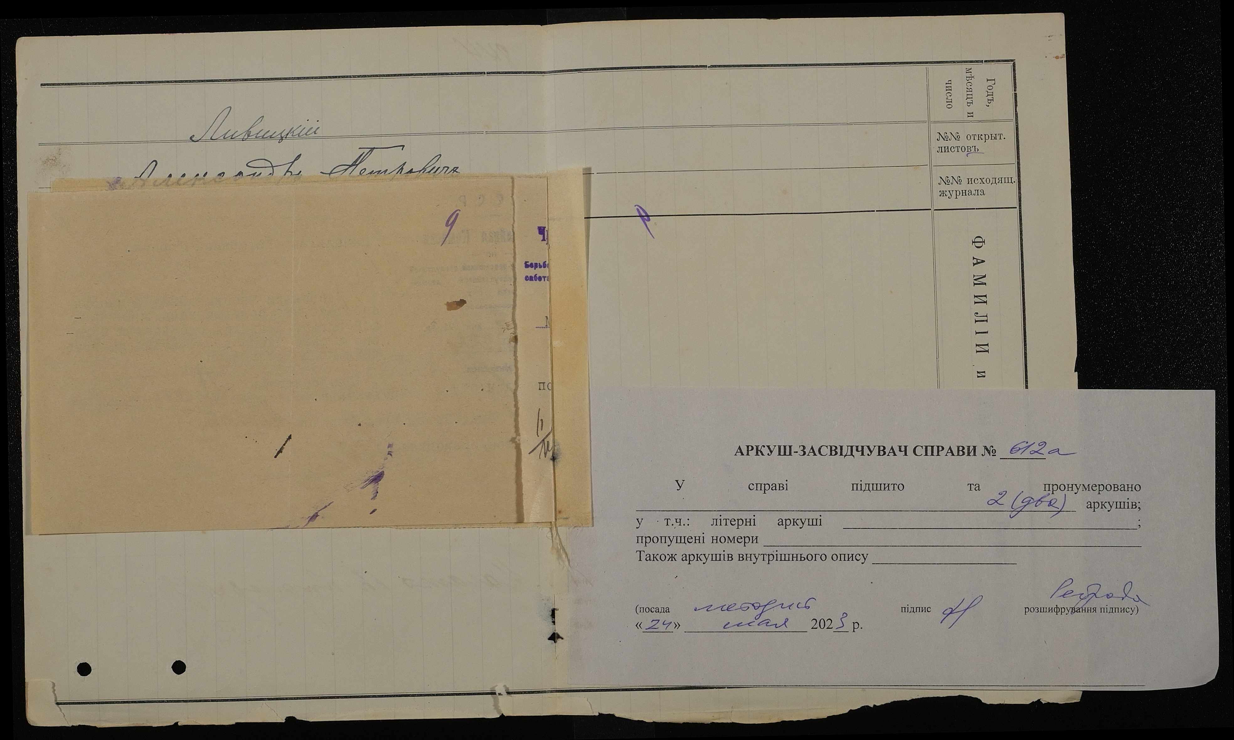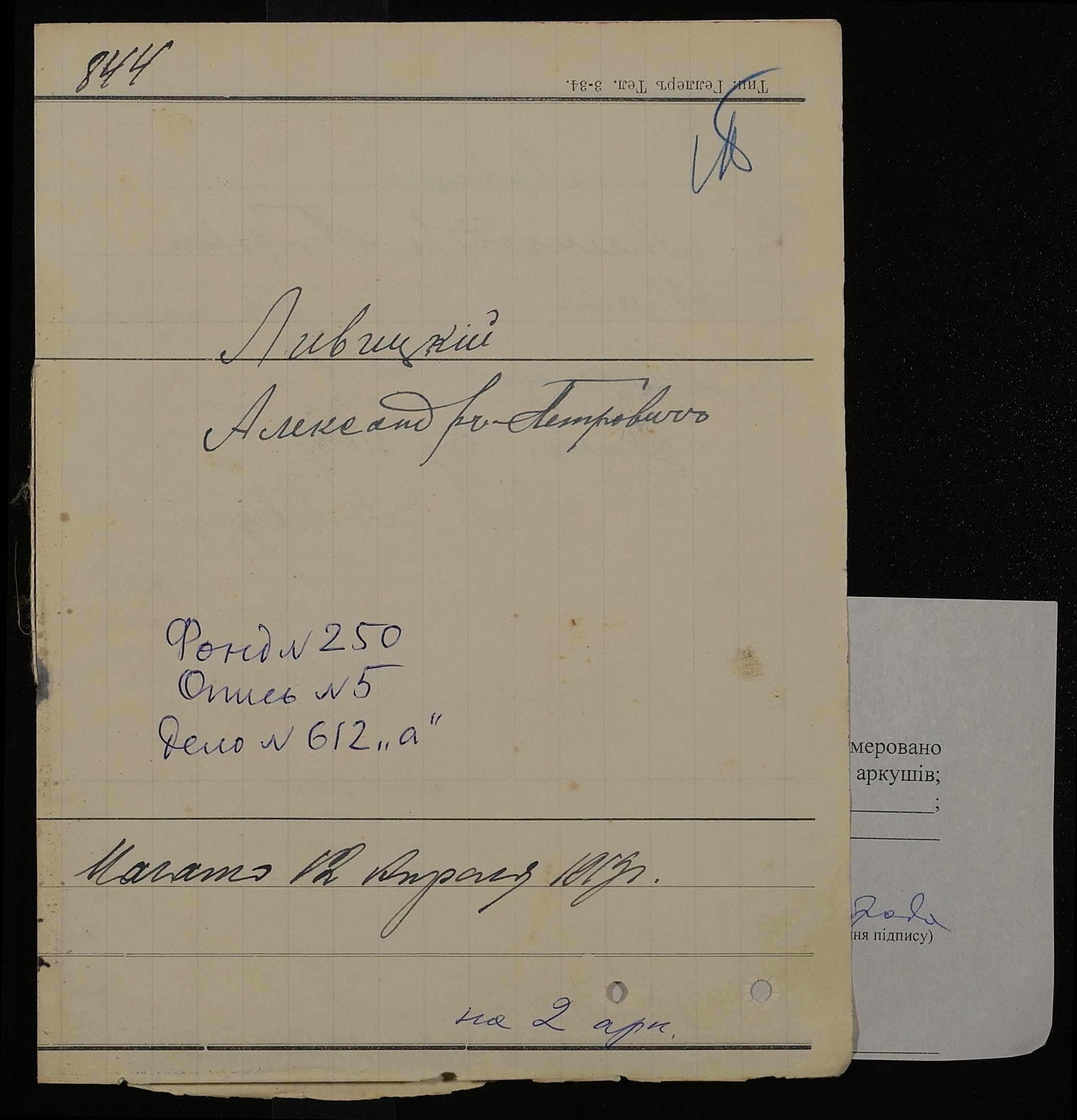 • • • • Справа № 612а Ливицький Олександр Петрович (Ливицкий Александр Петрович)